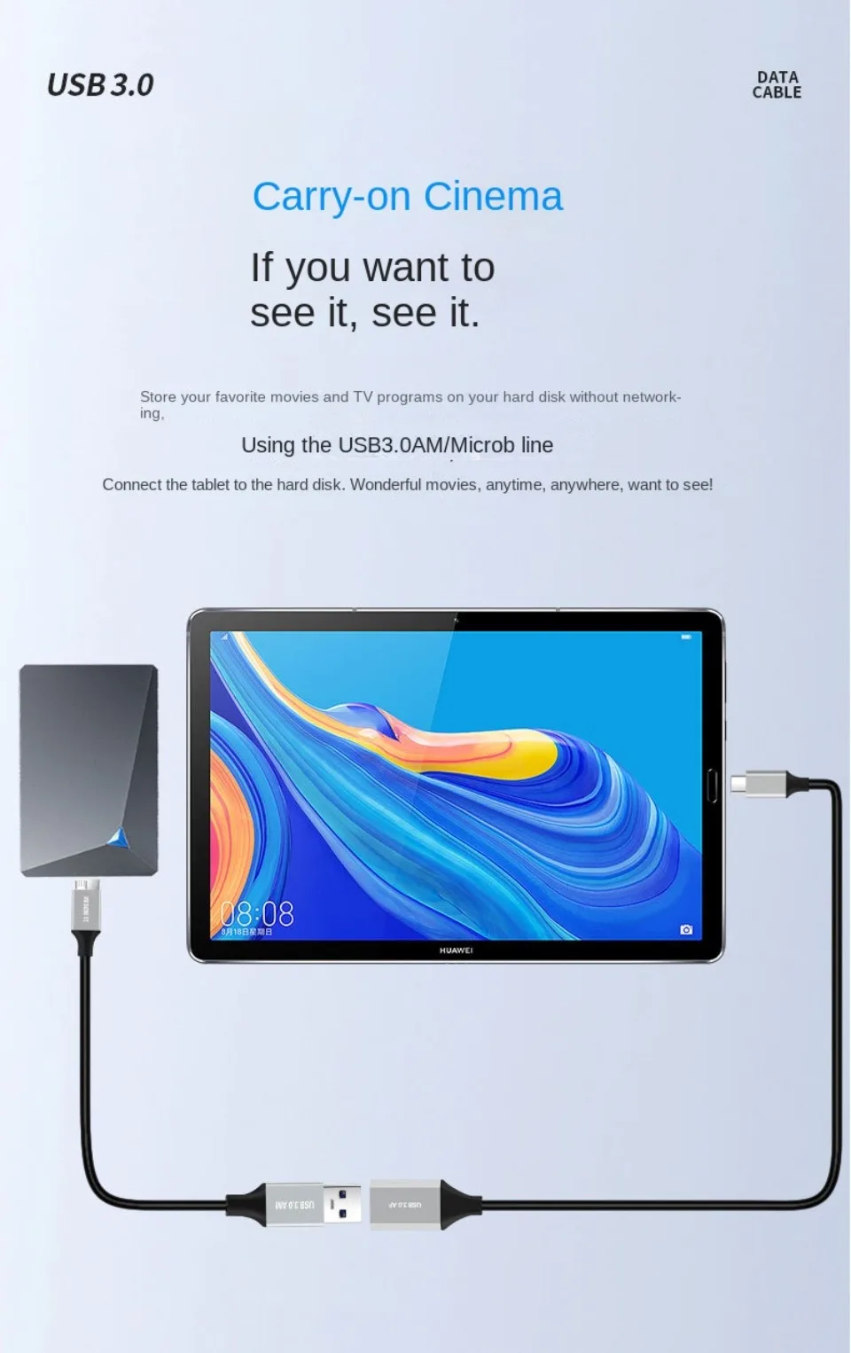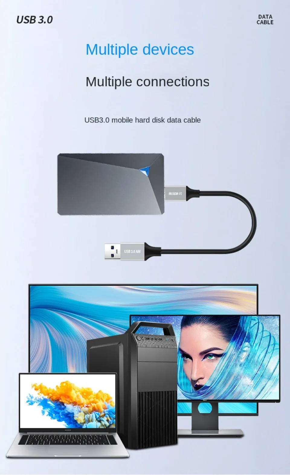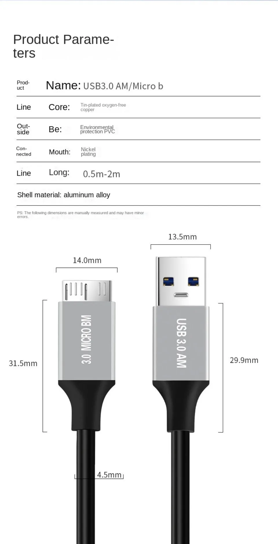 Transmisión de alta velocidad de archivos grandes por segundo La velocidad de transmisión puede alcanzar una velocidad máxima teórica de 5Gbps (USB3.0) Enlace la unidad flash USB al disco duro móvil para una transferencia de archivos de alta velocidad Especificación del núcleo: estándar de cobre de 9 núcleos + papel de aluminio + malla de blindaje trenzado 96 Carga + transmisión de datos Interfaz estándar USB3.0