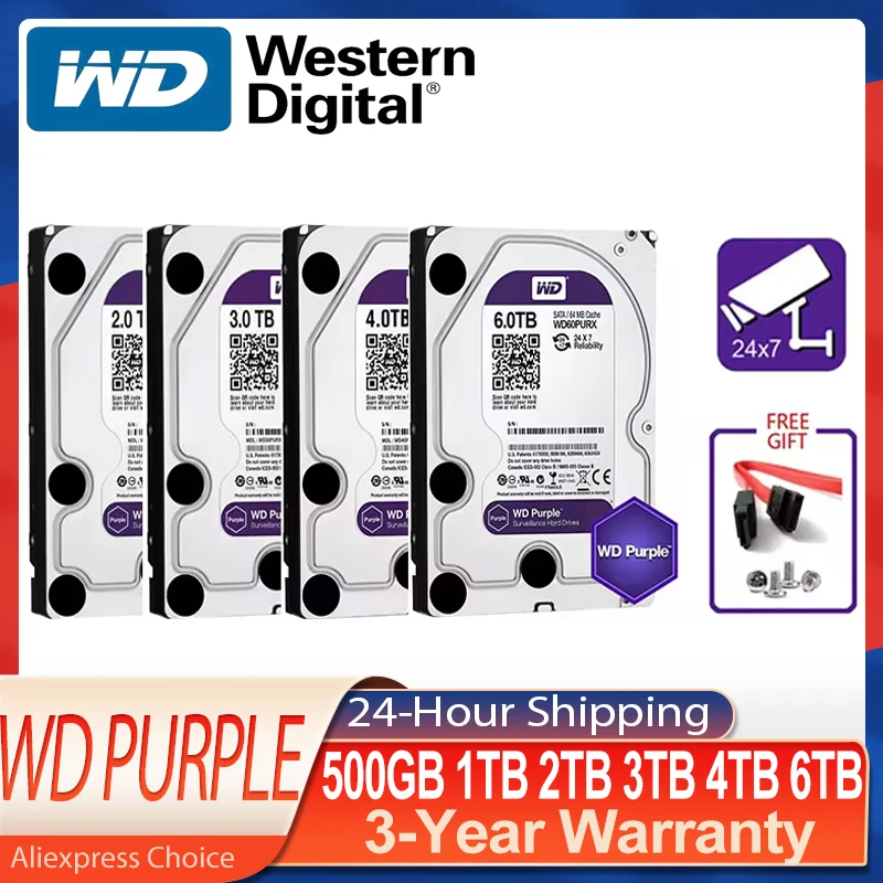 Comprar Disco duro interno de vigilancia WD Purple 4TB 3,5 "64M caché SATA III 6 Gb/s 1TB 2TB 3TB HDD HD disco duro para CCTV DVR NVR