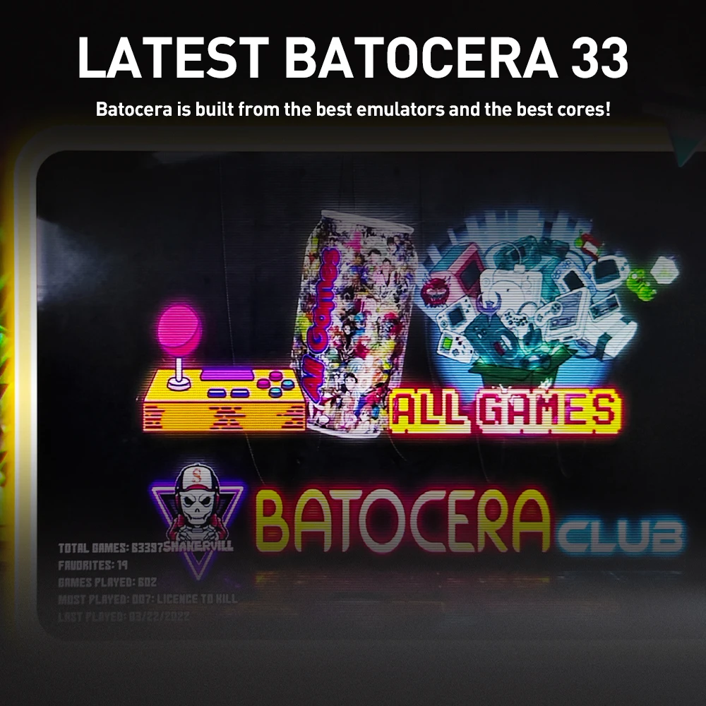Plug and play, no requiere controlador.El último sistema de juegos Batocera 33 está preinstalado y funciona sin problemas.Además, hemos realizado una actualización, el disco duro puede reconocer la partición directamente debajo del sistema Windows y es más conveniente agregar y eliminar juegos.
