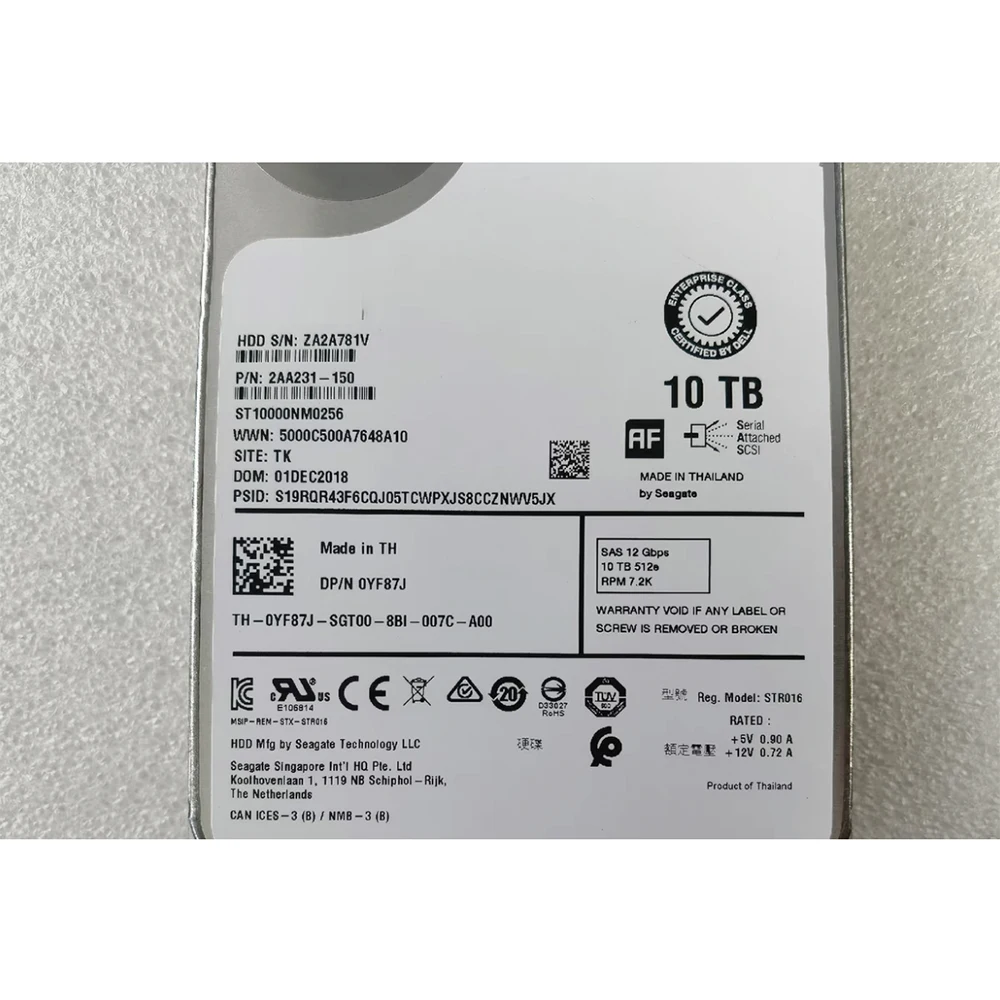 Para disco duro de servidor DELL 10T SAS 12G 3,5 ''HDD YF87J ST10000NM0256