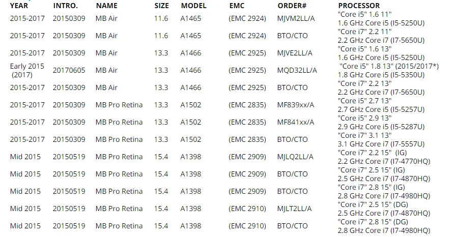 512GB: 655-1805A, 655-1818A, 655-1839A, 655-1805D256GB: 655-1803, 655-1817, 655-1838128GB: 655-1802, 655-1816, 655-1837Año: 2013 2014 2015 2016 2017Condición del producto: usado, 100% probado, garantía de 90 días.Advertencia: Por favor, verifique el tipo de interfaz SSD y el año y los modelos compatibles exactos antes de comprarlo.Nota:A1466 A1465 no admite 1TB.