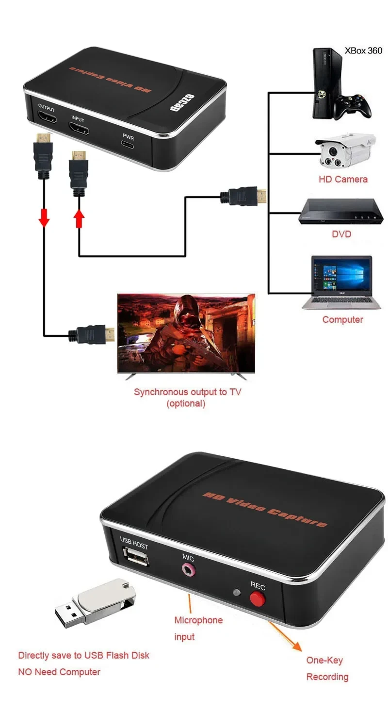 Comprar Disco Flash USB con 1 tecla, tarjeta de captura de Audio y vídeo en bucle HDMI, 1080P, caja de grabación para PS4, cámara, DVD, TV Box, PC, Juego