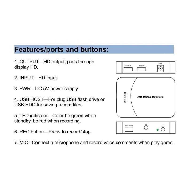 Tarjeta de captura de vídeo Ezcap280HD HDMI X1