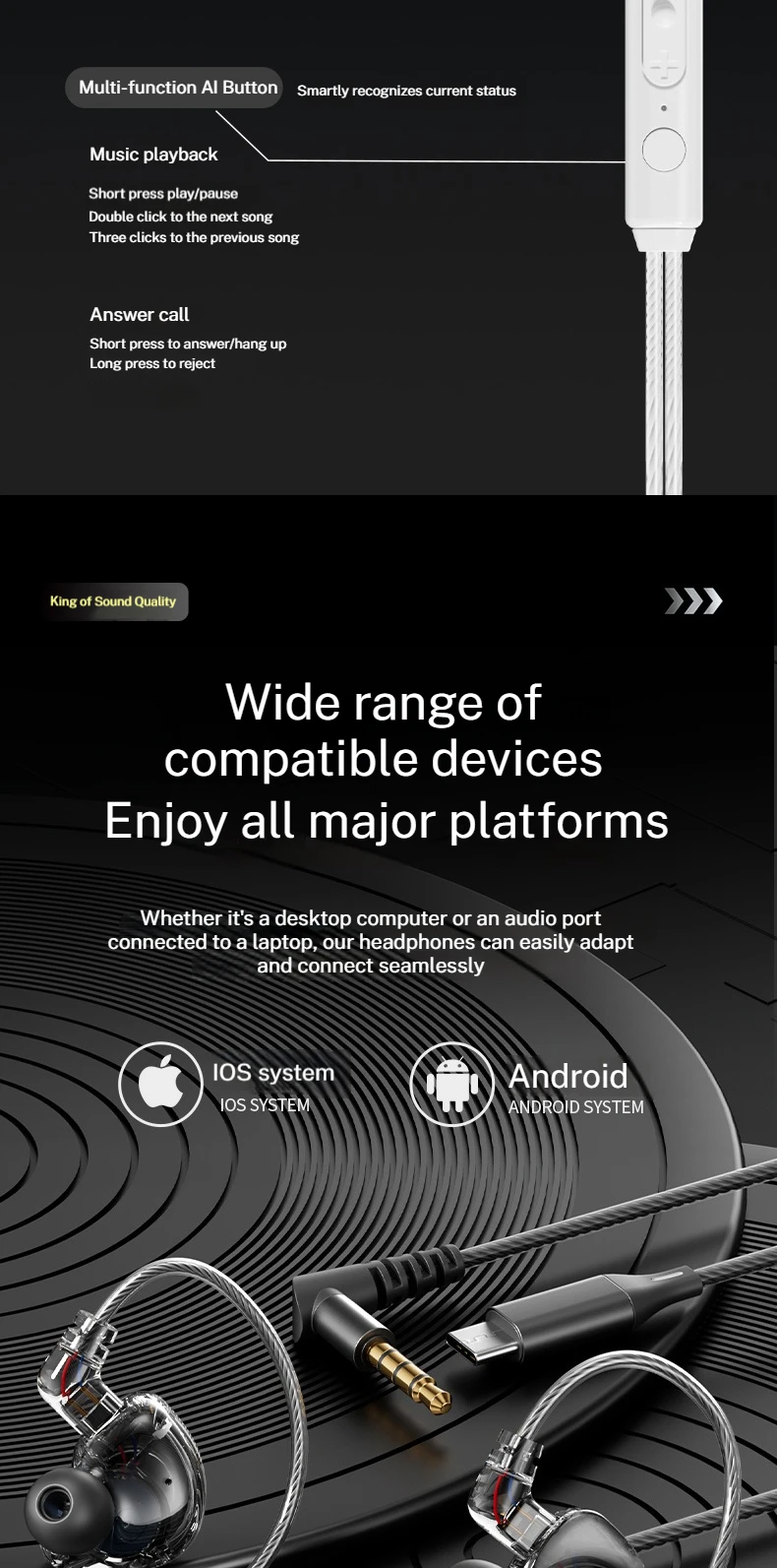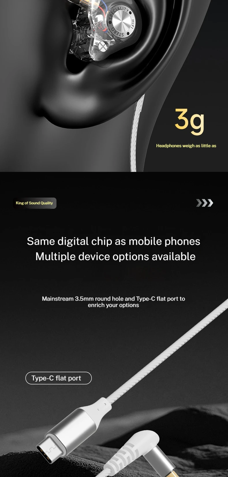Diseño desmontable Auriculares con sonido envolvente 9D Tipo C y auriculares con cable de 3,5 mm Auriculares intrauditivos para juegos Samsung en micrófono HD