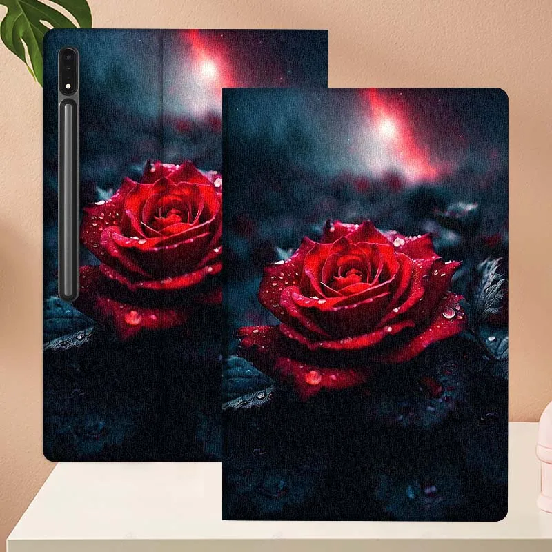 Diseño de flor de rosa roja para Samsung Galaxy Tab S11 S10 S9 S8 S7 S6 A10.1 A9 A8 A7 10,1 Lite FE Plus pulgadas funda para tableta