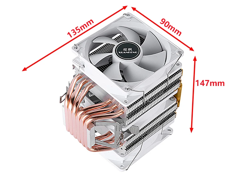 Comprar Disipación de calor de PC, Torre Dual, 6 tubos de calor, Enfriador de CPU, ventilador de instalación LGA2011 x79 x99 E5 2066 115x1200 1700 i3 i5 i7 AMD