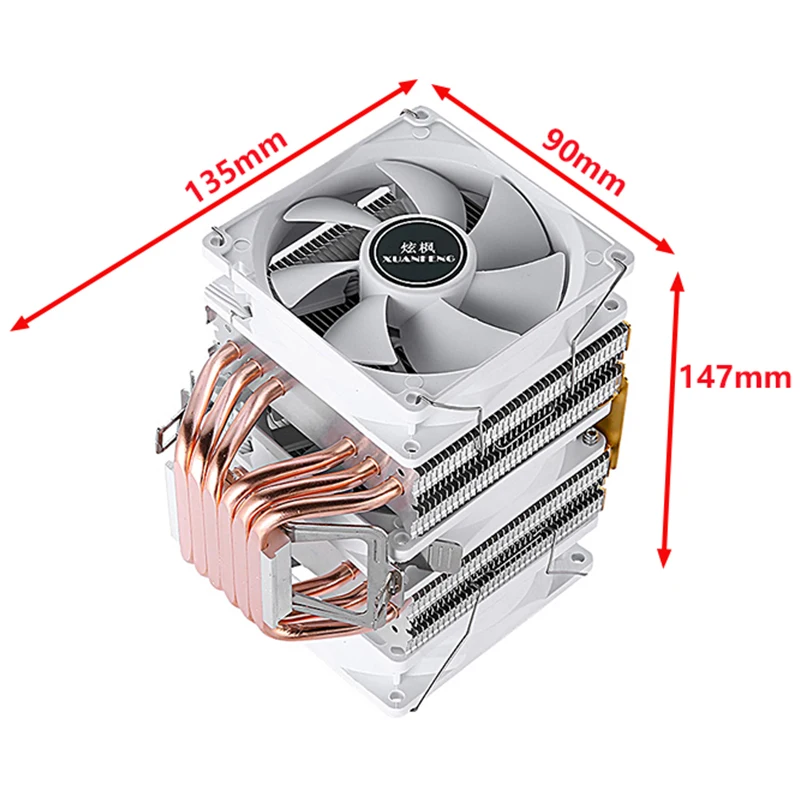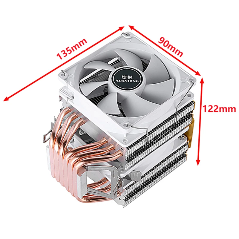 Comprar Disipación de calor de PC, Torre Dual, 6 tubos de calor, Enfriador de CPU, ventilador de instalación LGA2011 x79 x99 E5 2066 115x1200 1700 i3 i5 i7 AMD