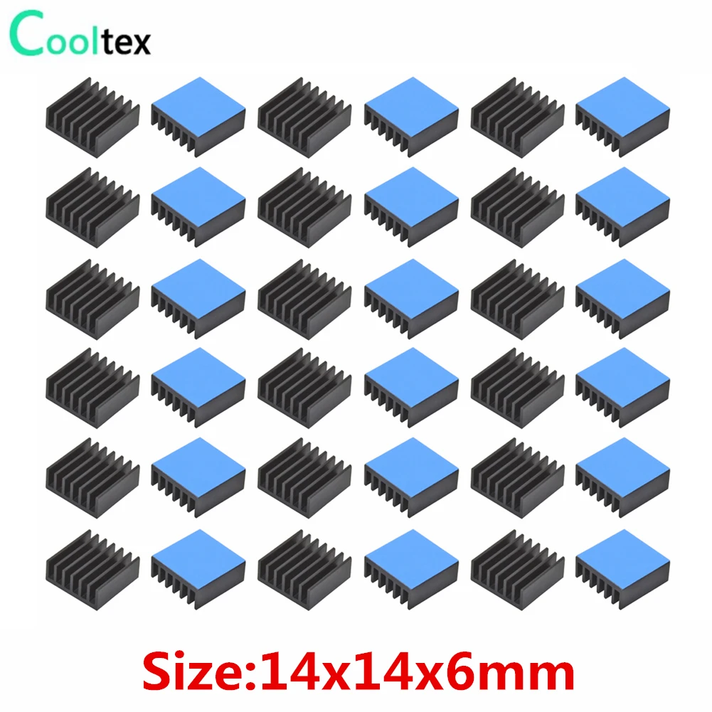 Comprar Disipador de calor de aluminio 50 Uds 14x14x6mm para Chip electrónico IC Raspberry pi con cinta conductora térmica