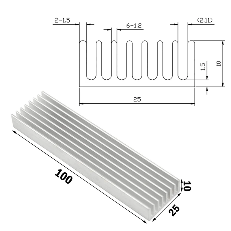 100 Piezas 100x25x10mm Disipadores de calor plateados