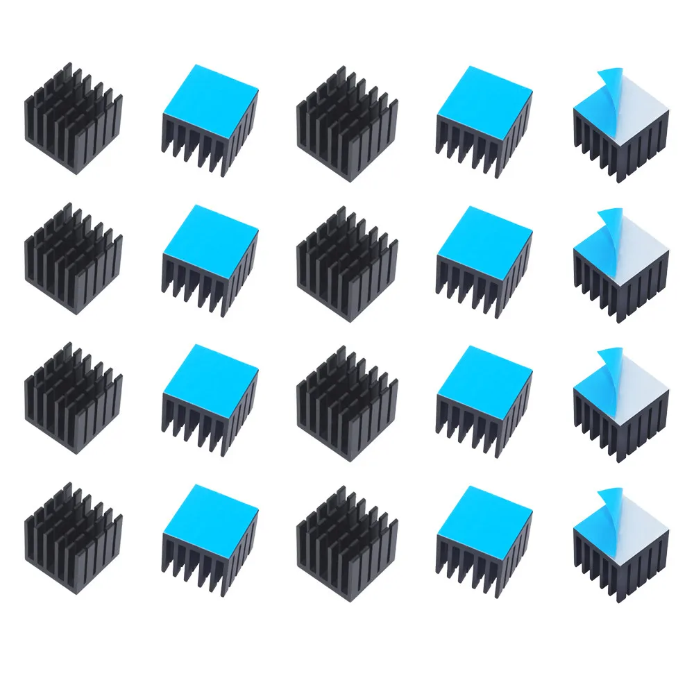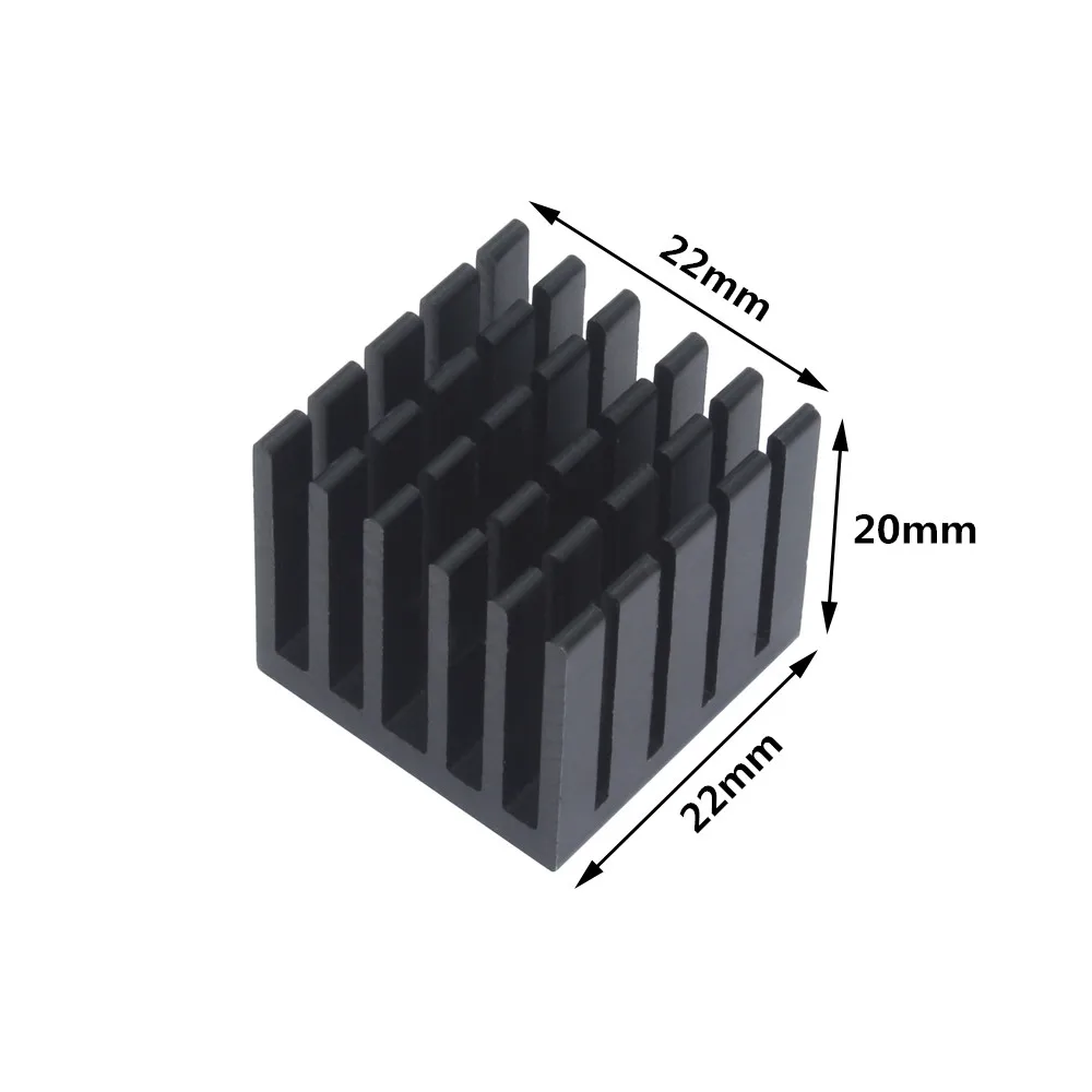 Comprar Disipador de calor de aluminio negro, 20 piezas, 22x22x20mm, refrigeración para Chip electrónico IC MOS Raspberry pi con cinta conductora térmica