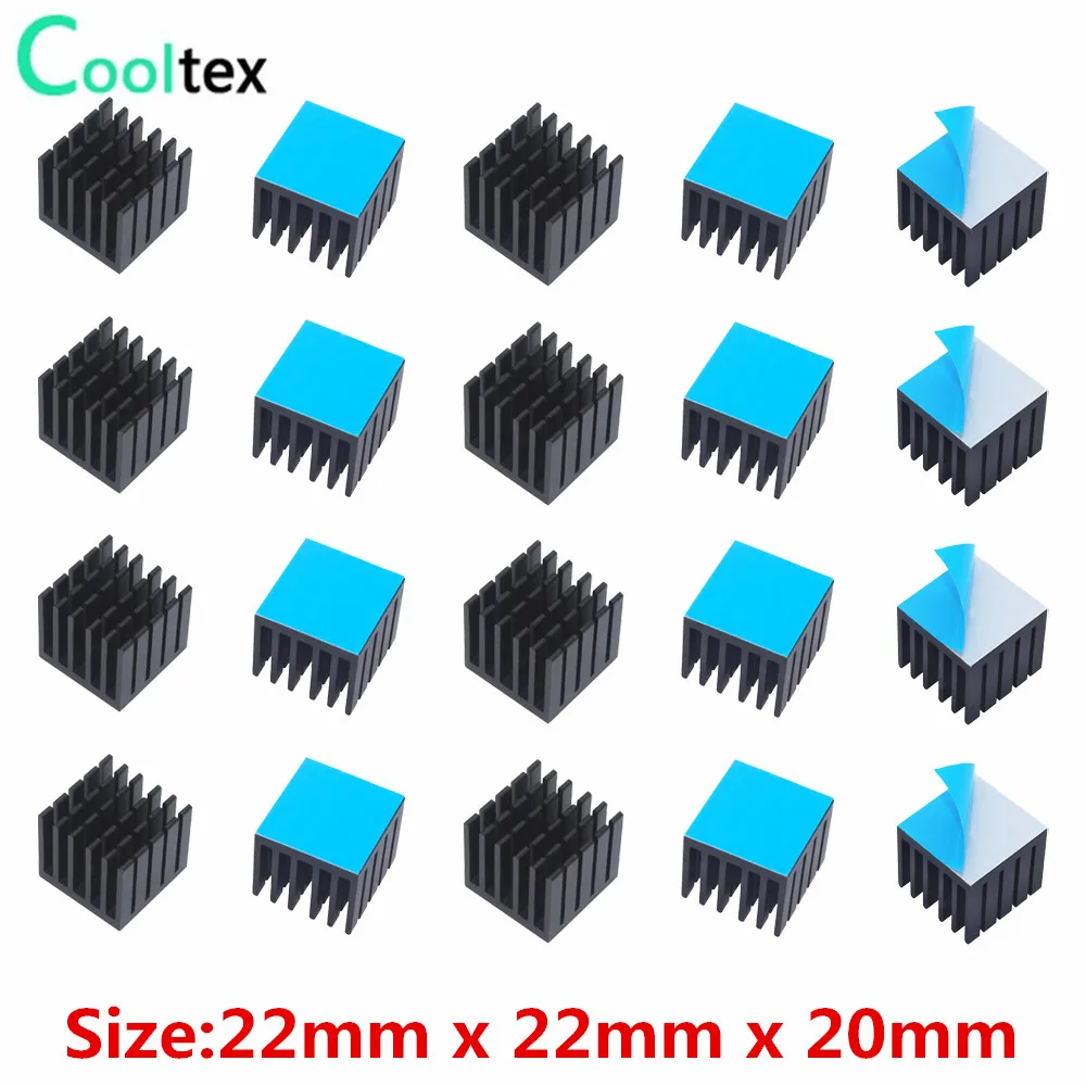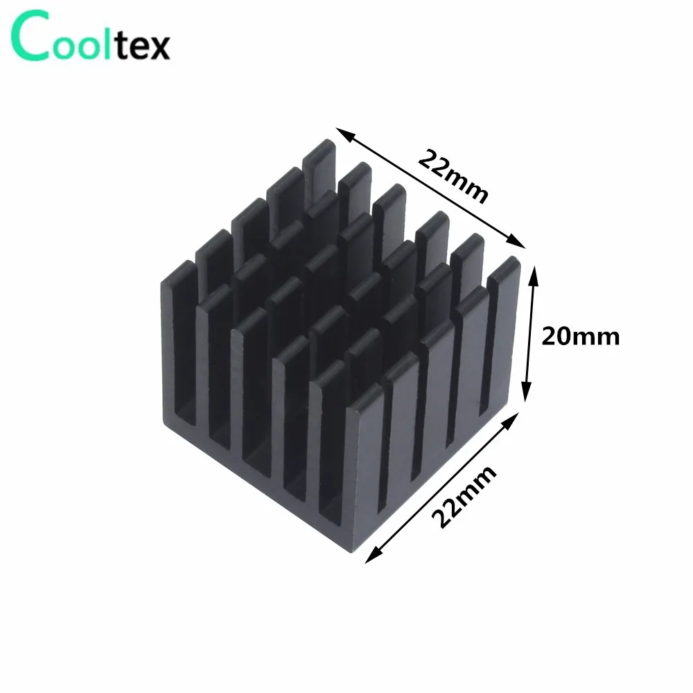 Comprar Disipador de calor de aluminio negro, 20 piezas, 22x22x20mm, refrigeración para Chip electrónico IC MOS Raspberry pi con cinta conductora térmica