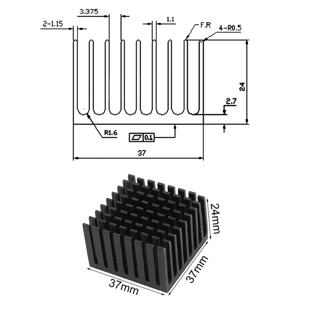 37x37x24mm NegroDisipadores térmicos de aluminio