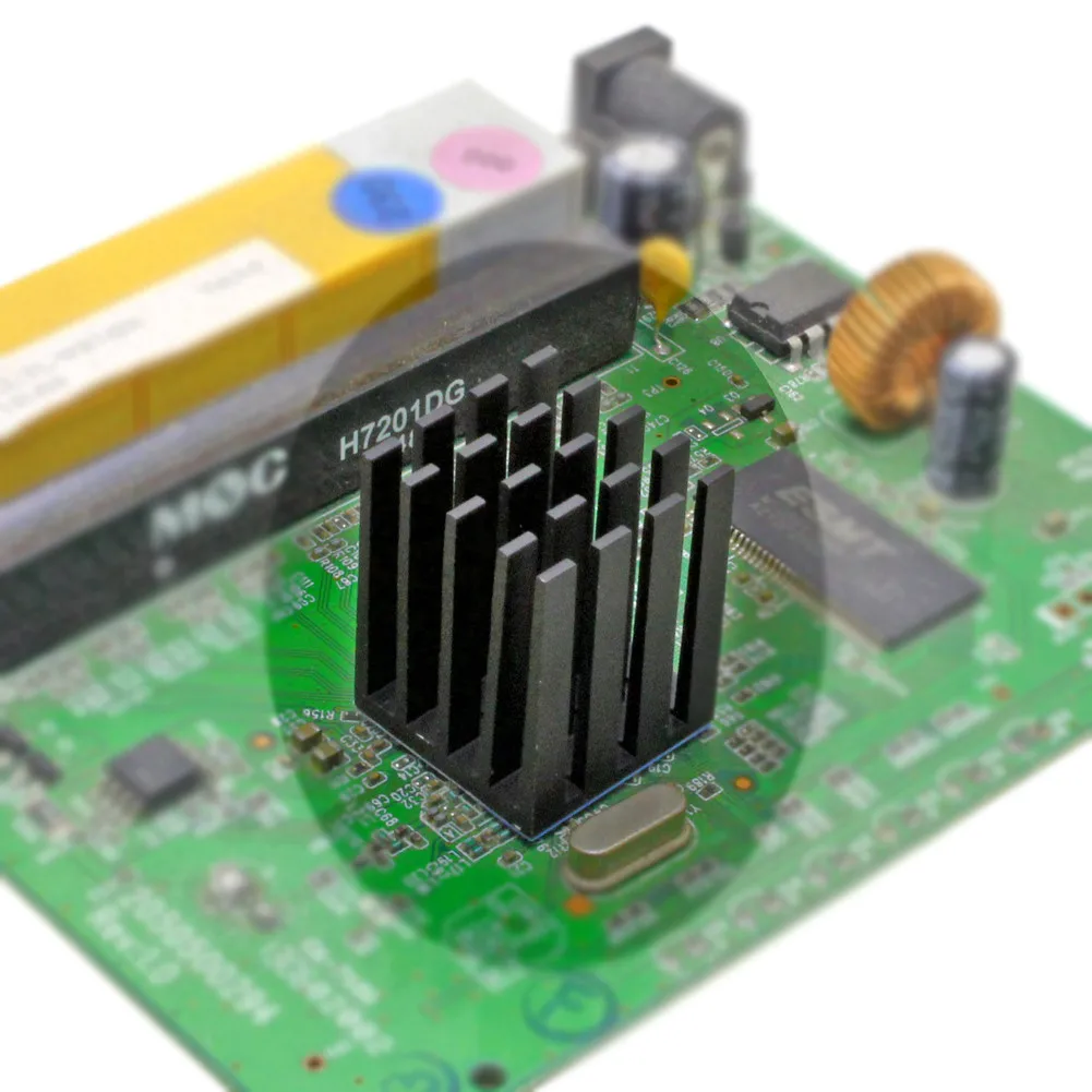 1.Se utiliza para chips, IC, diodos, triodos, electrónicos, MOS, RAM, frambuesa pi, impresora 3D, disipación de calor de componentes de la computadora o en cualquier lugar donde necesite un pequeño disipador de calor eficiente.