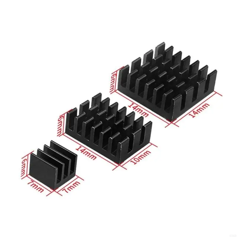 1 juego contiene: 1 disipador de calor de 14x14x6 mm/0,55x0,55x0,24 pulgadas, 1x14x10x6 mm/0,55x0,39x0,24 pulgadas y 1 disipador de calor de 7x7x6 mm/0,28x0,28x0,24 pulgadas