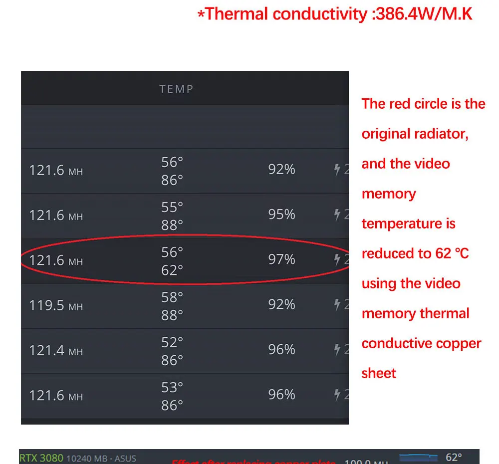 1.La conductividad térmica y la disipación de calor de la tarjeta gráfica fabricada es cobre puro, con una conductividad térmica de 386,4W/M.K.