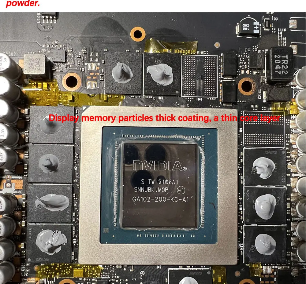 Después de desmontar el disipador de calor, primero limpie la almohadilla térmica original y limpie la superficie de la memoria de video y el disipador de calor de la GPU.