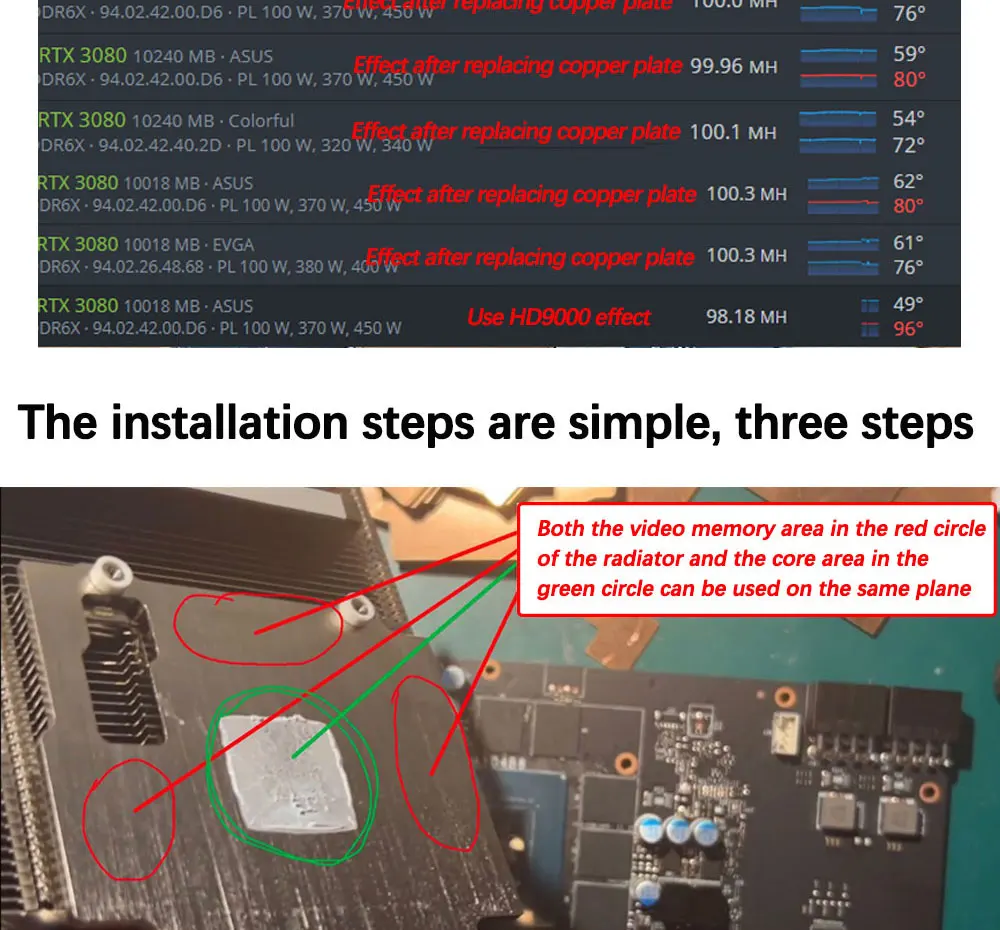 Adecuado para tarjetas gráficas 3070 (ti), 3080 (ti), 3090, 3090Ti con almohadillas térmicas superiores a 2 mm.¡Los modelos personalizados no son adecuados para otros modelos!!