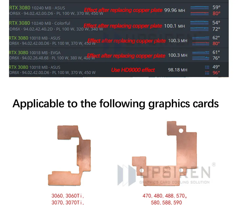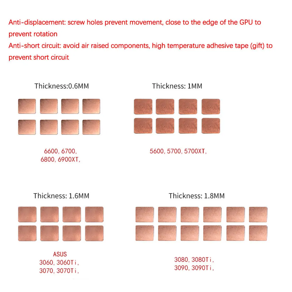 Adecuado para 3070 (ti) 3080 (ti) 3090 3090Ti con tarjetas gráficas con almohadillas térmicas por encima de 2mm ¡Modelos personalizados no son adecuados para otros modelos!
