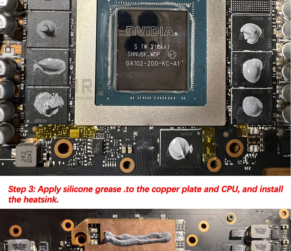 Después de desmontar la disipador de calor primero limpie el térmica original pad ¡Y la superficie de la memoria de vídeo y la GPU disipador de calor!