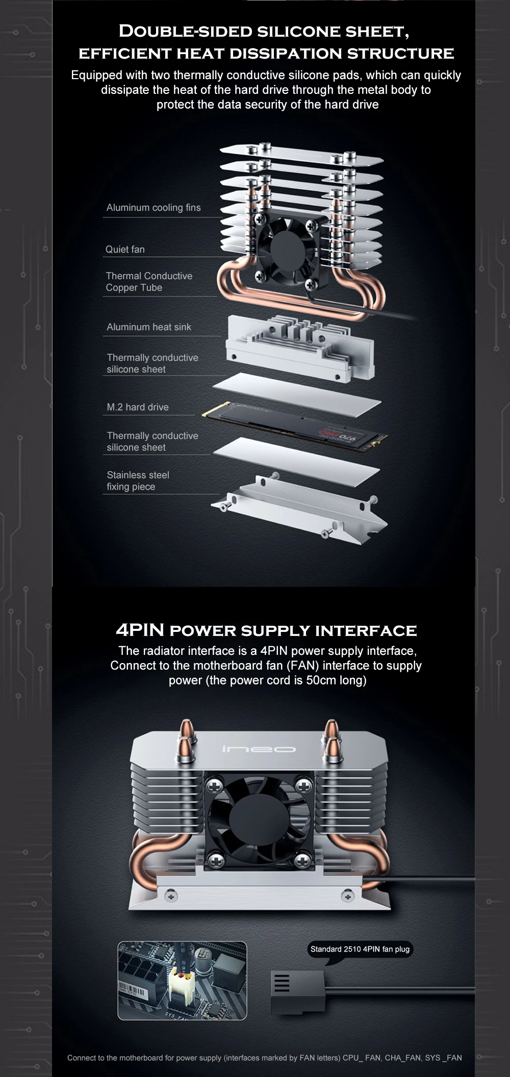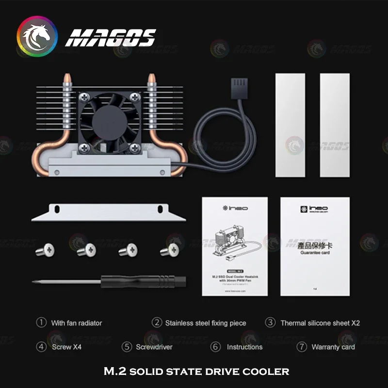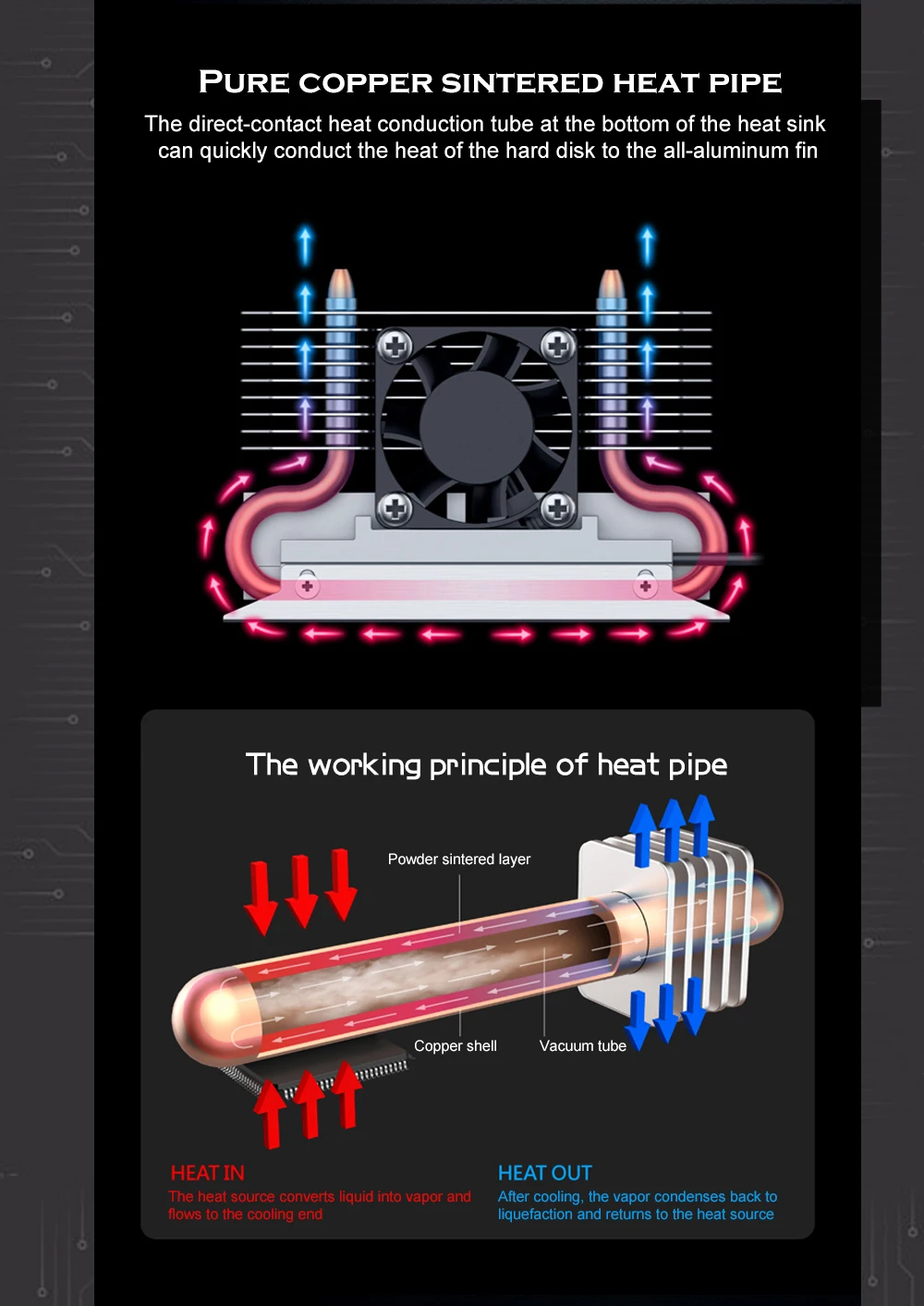 Comprar Disipador de calor de disco duro, ventilador de refrigeración PWM, tubo de cobre doble, radiador de doble cara, PC de aluminio, M.2, SSD, nvme