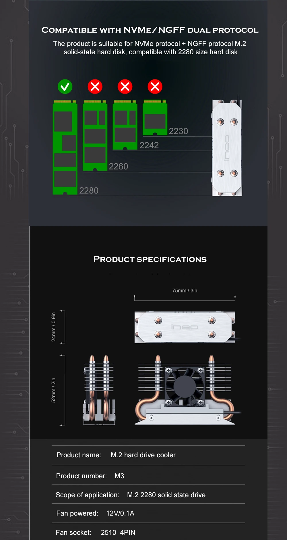 Enfriador de unidad de estado sólido M.2, radiador de doble cara de tubo de cobre compuesto doble Compatible con armadura de chaleco de refrigeración 2280 NVMe SSD