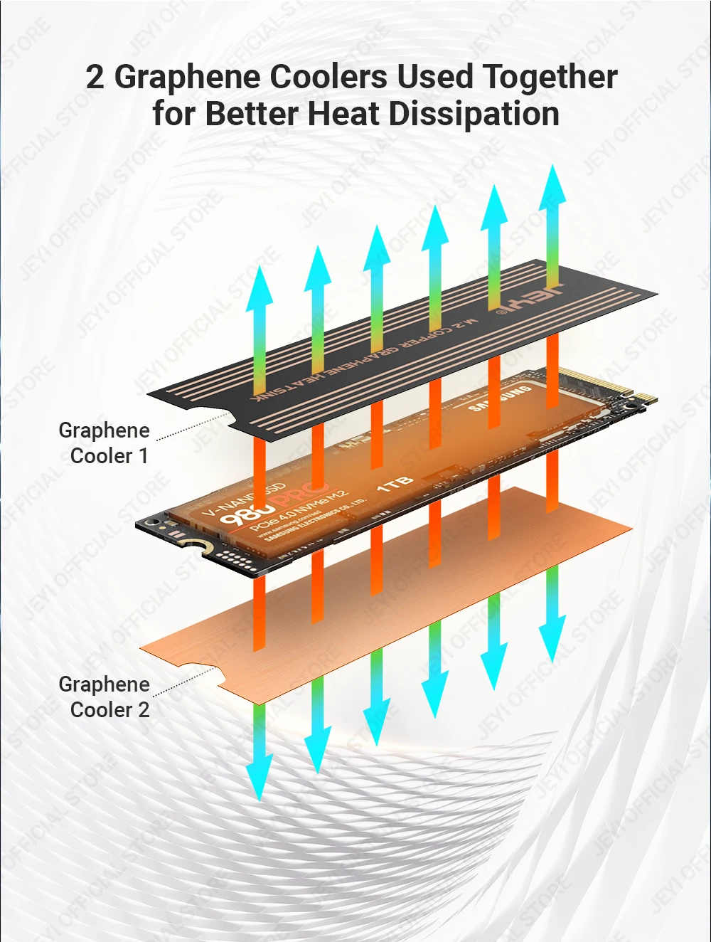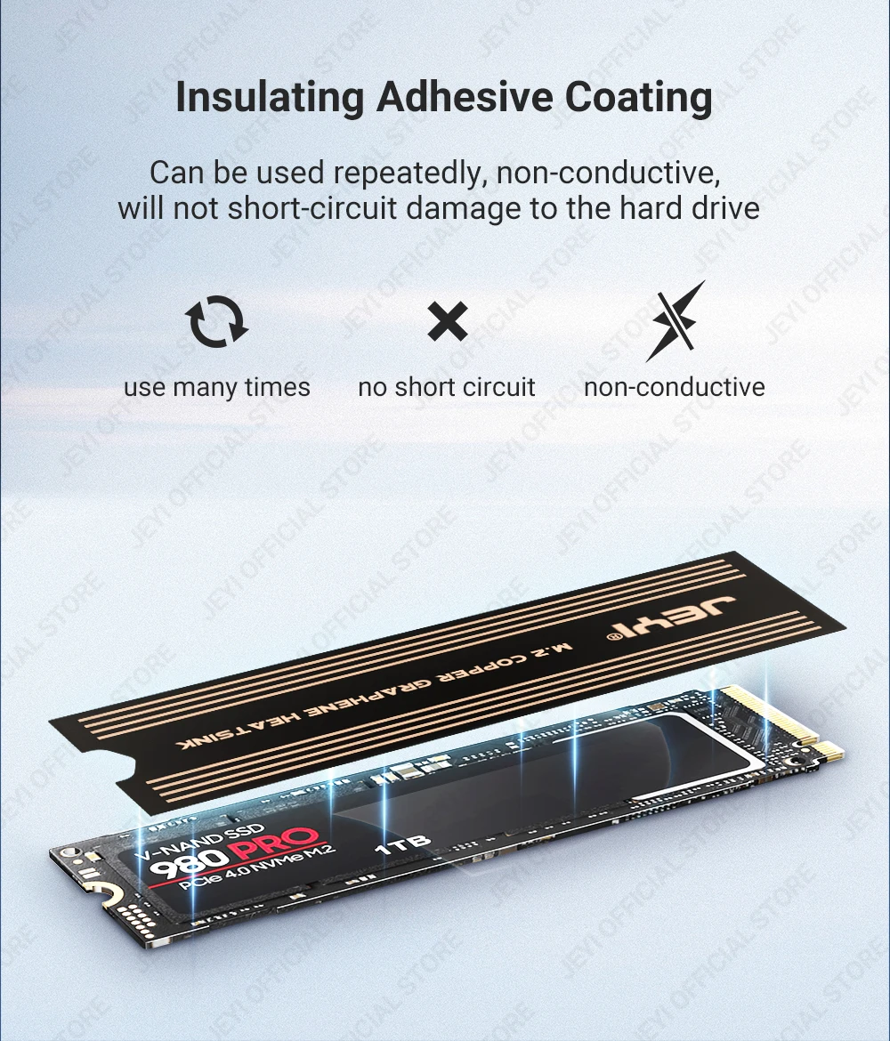 Disipación de calor eficiente: los disipadores de calor SSD M.2 de JEYI están diseñados con una combinación única de materiales avanzados, que incluyen grafeno de alta calidad y lámina de cobre duradera.Esta combinación disipa eficazmente el calor generado durante el uso intenso, evitando la aceleración térmica y manteniendo velocidades de transferencia de datos consistentes a alta velocidad.