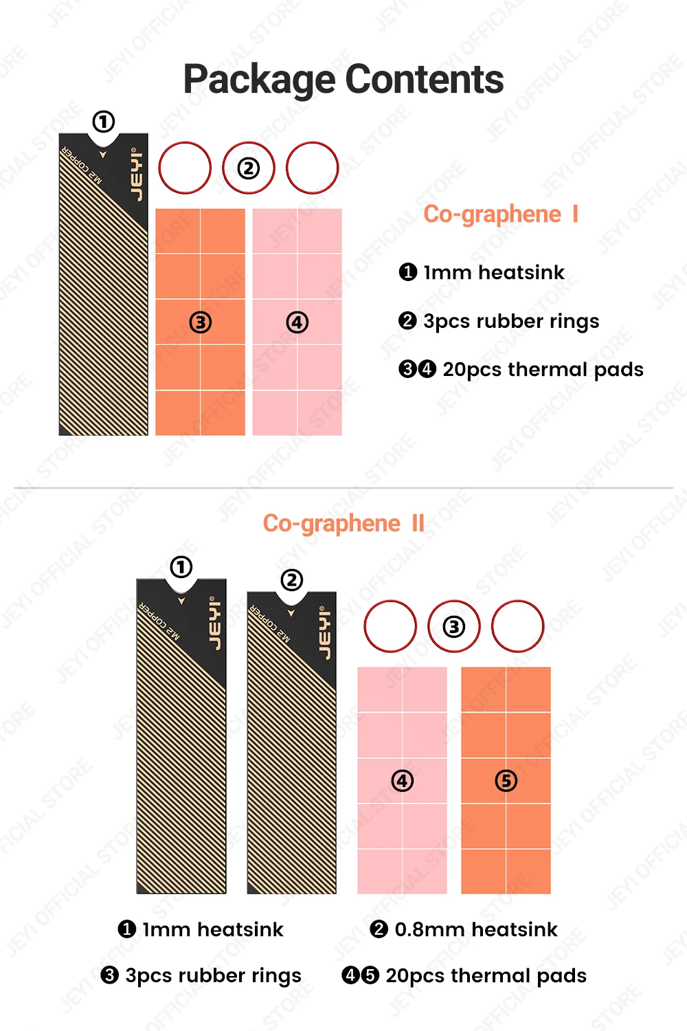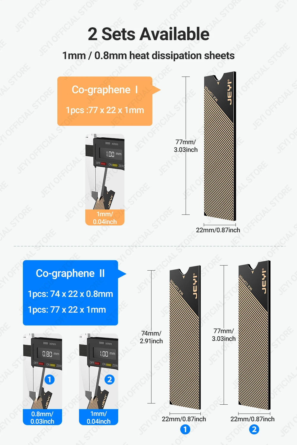 【Lista de embalaje】 Co-grafeno I: 1 disipador térmico de 77*22*1 mm.Co-grafeno II: 1 unidad de disipadores térmicos de 77*22*1 mm y 1 unidad de 74*22*0,8 mm