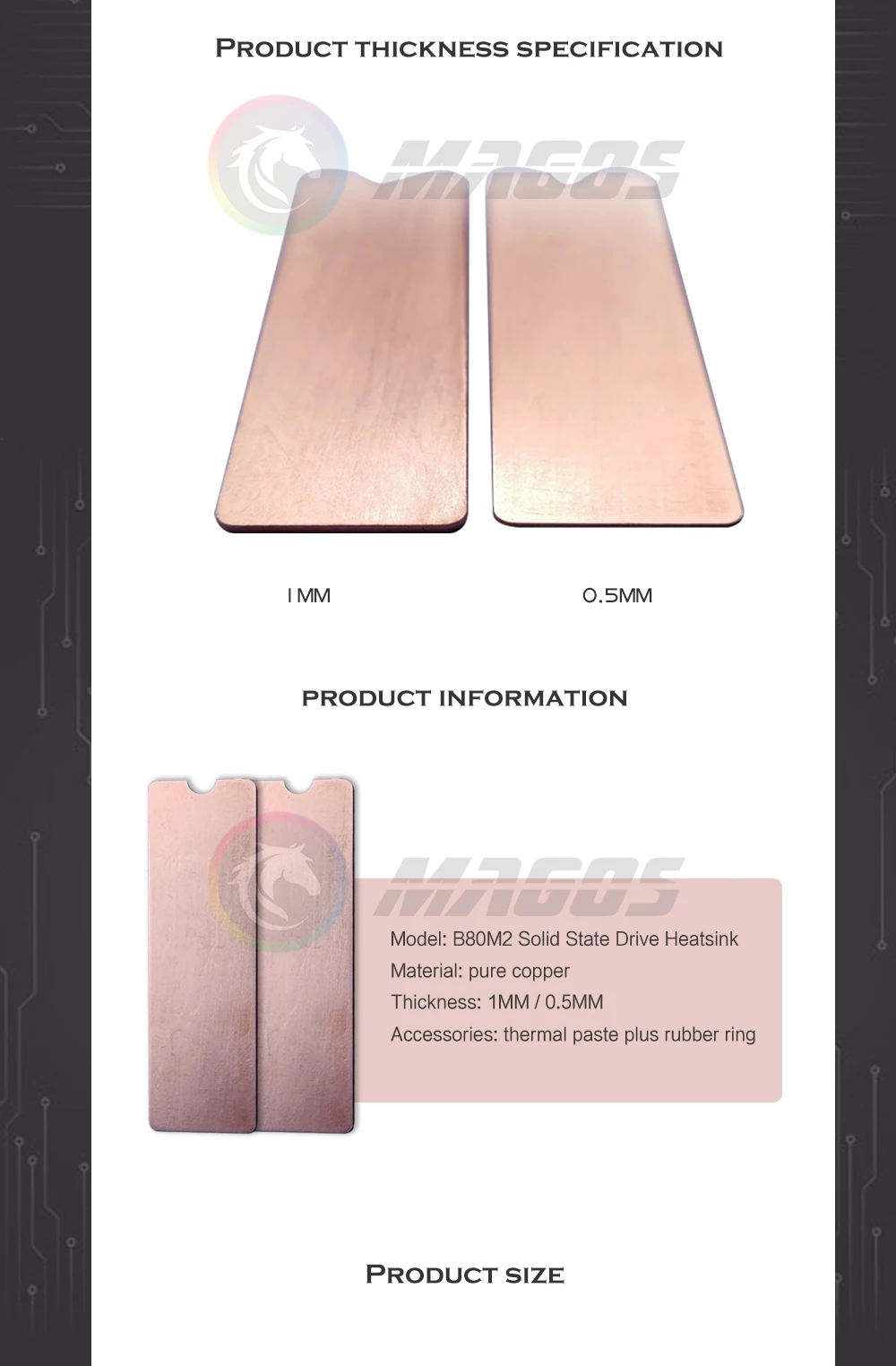 Disipador de calor M.2 de cobre puro, disco duro de estado sólido NVME NGFF M.2 2280, junta de disipador de calor Delgado B80 para PC de escritorio Notebook