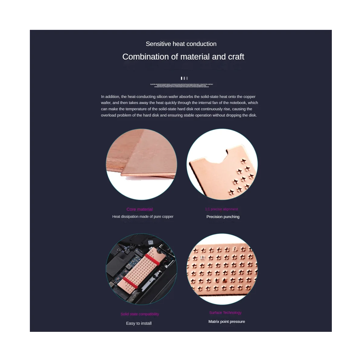 (Las piezas pequeñas se pueden conectar con precisión al control principal y a los chips de caché de las unidades de estado sólido, lo que proporciona una conducción de calor más precisa)