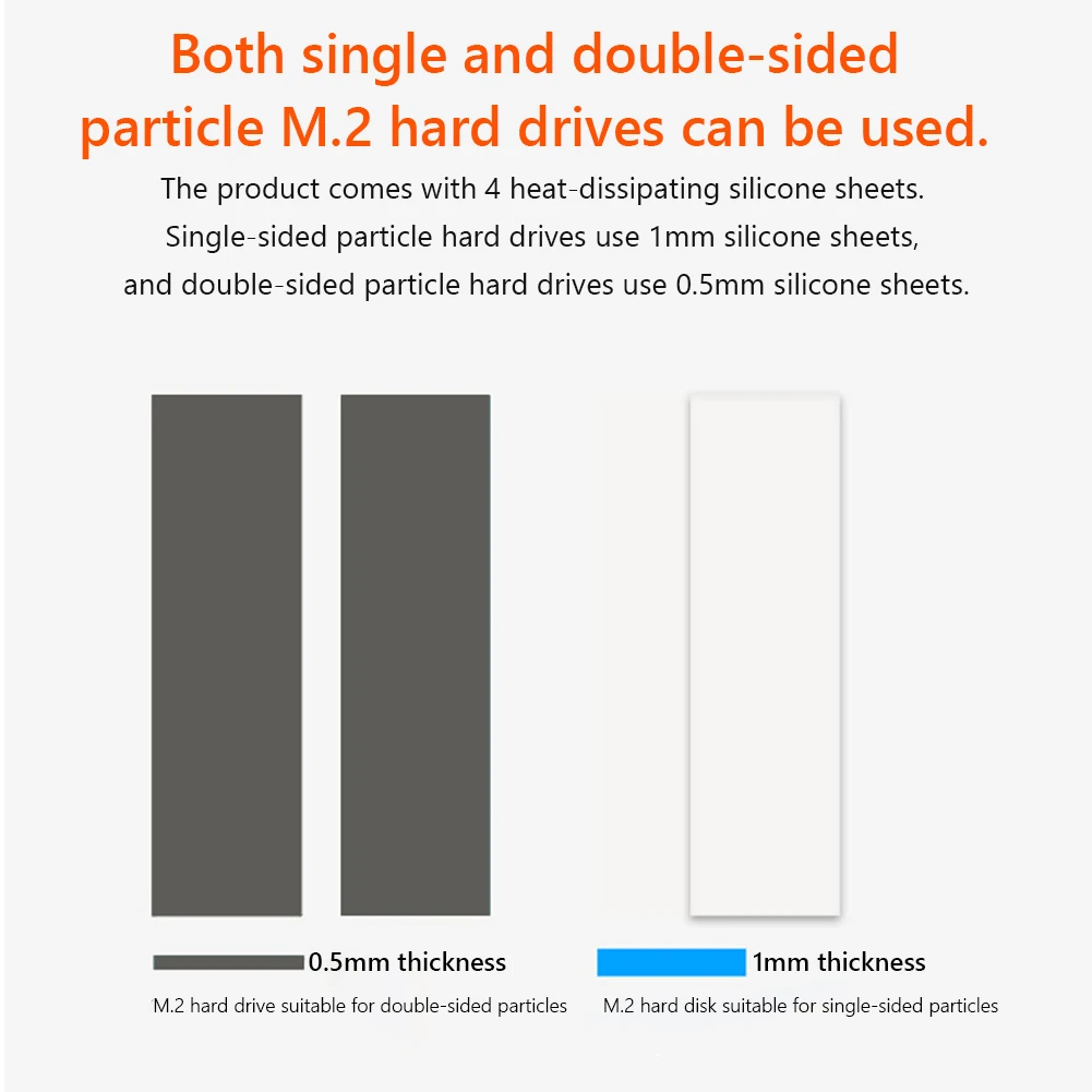 5.Compatible con SSD 2280:Diseñado específicamente para su uso con unidades de estado sólido (SSD) M.2 de tamaño 2280, este disipador de calor también admite SSD de partículas de una y dos caras, lo que garantiza la compatibilidad con la mayoría de los modelos.Sólo recuerda elegir el grosor del disipador de calor correspondiente para tu SSD.