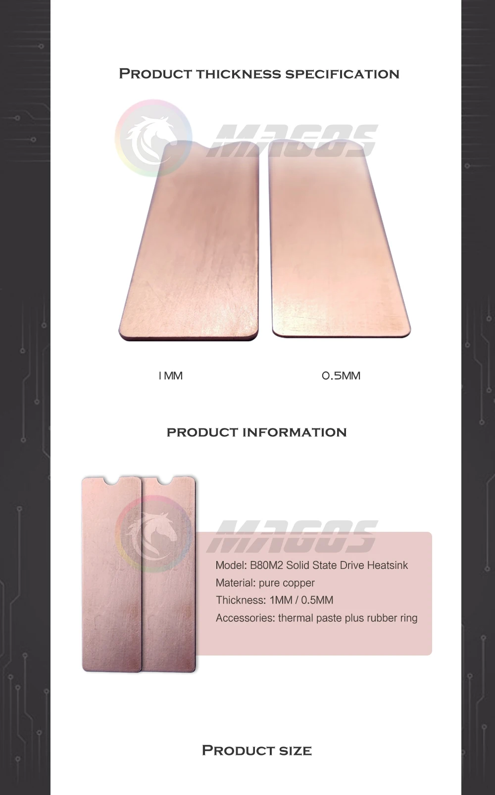 Disipador de calor M.2 SSD NVME NGFF M.2 2280 disco duro de estado sólido disipador de calor de cobre puro B80 radiador enfriador delgado para computadora portátil
