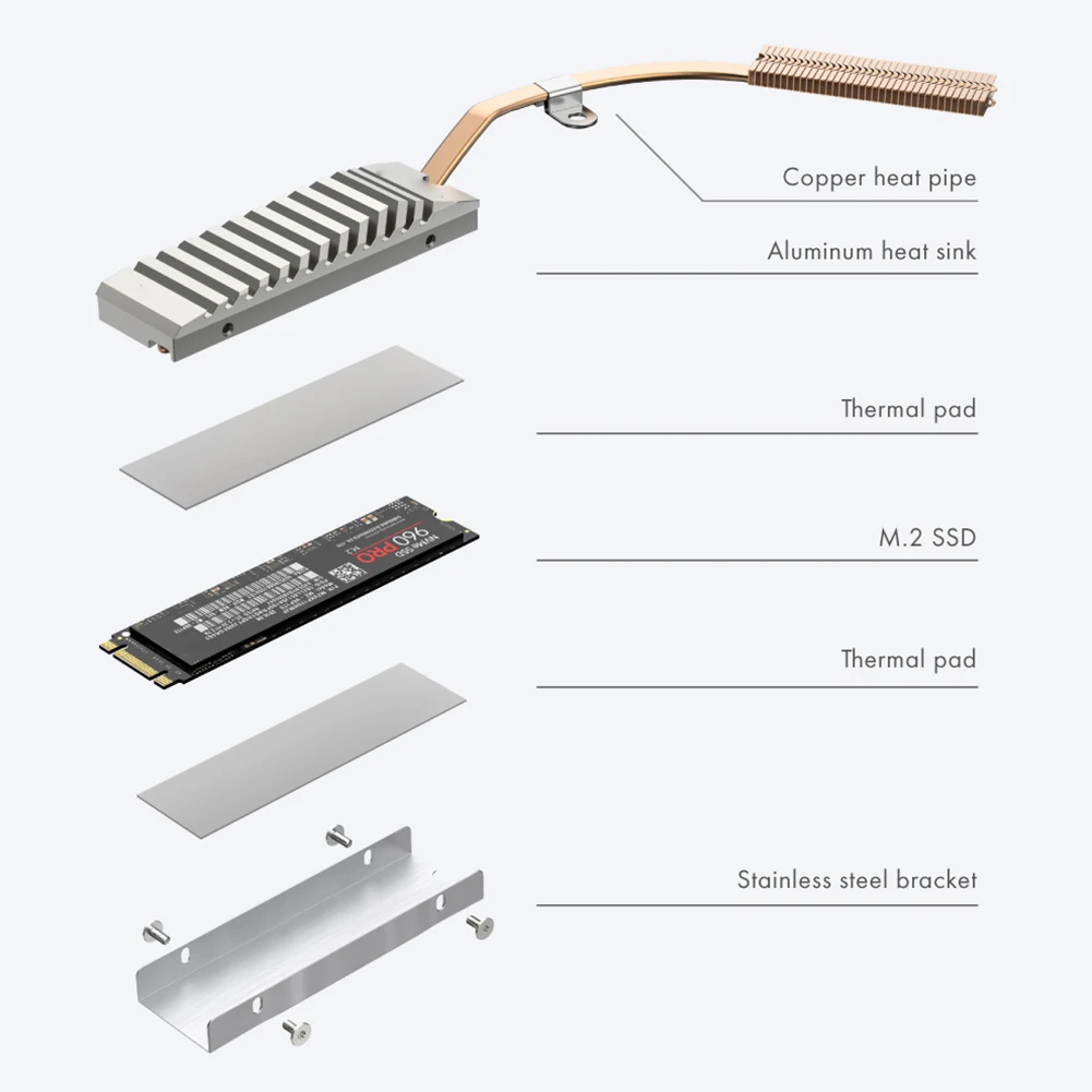Soporte de disco duro: el producto es adecuado para Protocolo NVMe + protocolo NGFF M.2 unidad de estado sólido, compatible con disco duro de tamaño 2280
