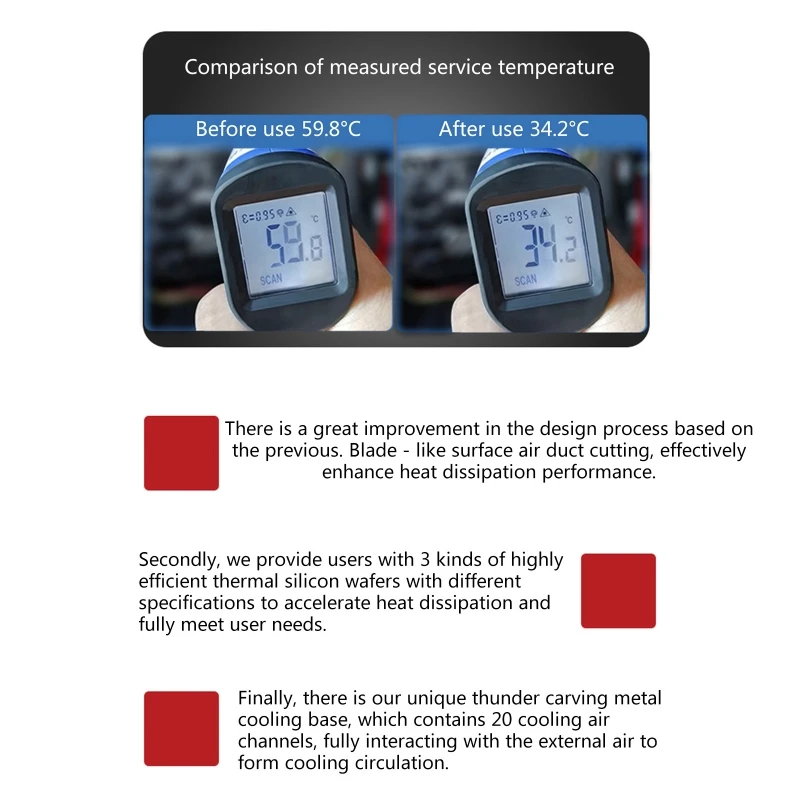 Diseño especial, aumenta en gran medida el área de disipación de calor, mejor efecto de enfriamiento (varía según el entorno)
