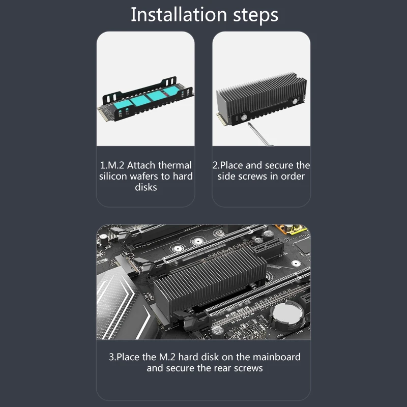 Admite disipación de calor para varios tipos de disco duro M.2 NVME. Este disipador de calor no afectará el uso de disipadores de calor de CPU o tarjetas gráficas