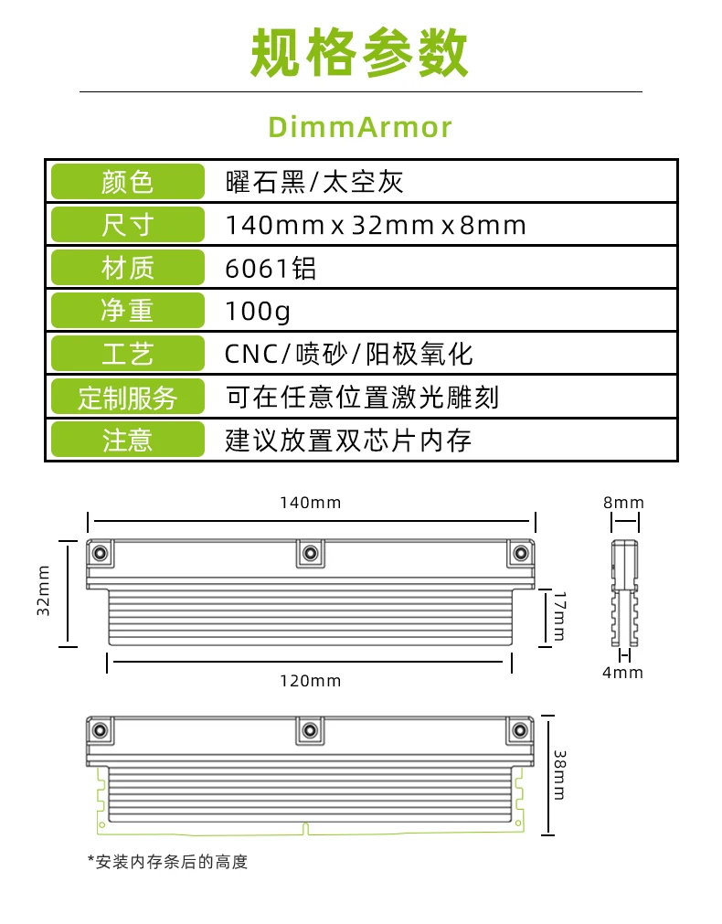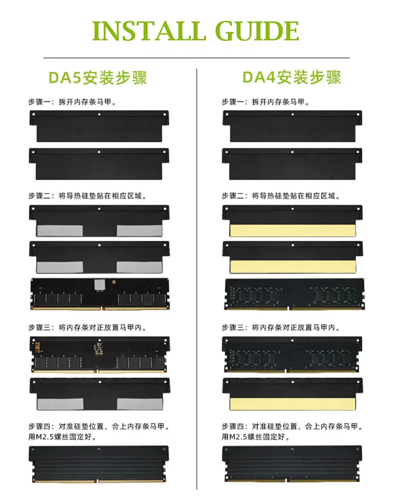 Comprar Disipador de calor con memoria AboStudio DDR5/DDR4, chaleco de armadura de disipación de calor RAM de aluminio CNC, negro, gris, blanco, sin luz