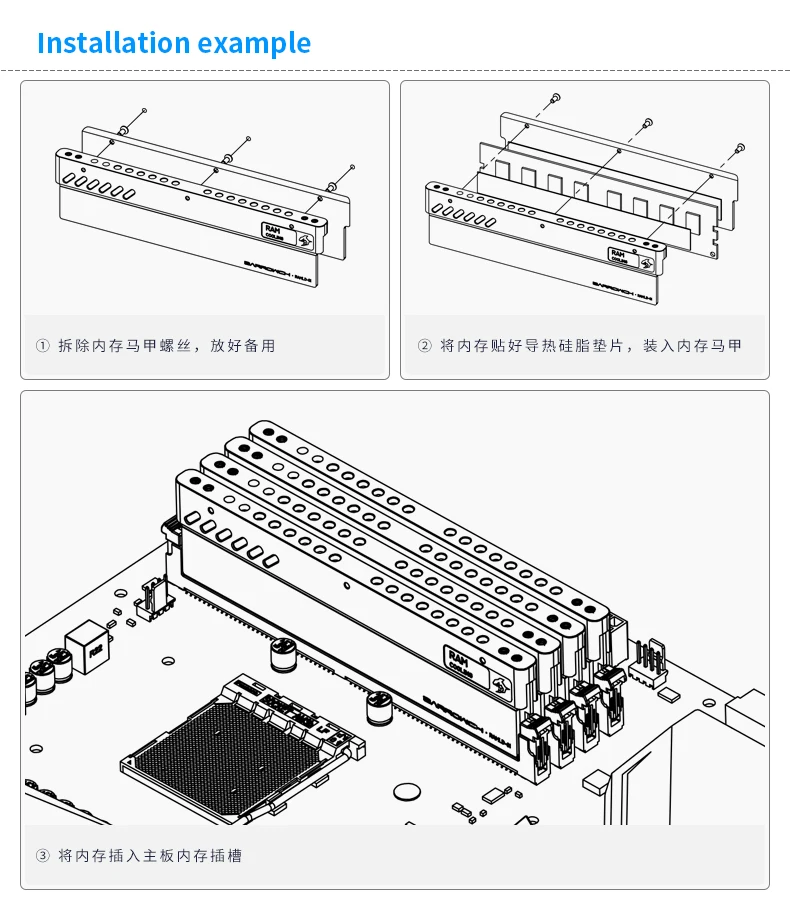 Comprar Disipador de calor con memoria BARROWCH DDR5, chaleco de armadura de disipación de calor RAM de aluminio para actualización de refrigeración por aire y agua, negro, FBRAMLD-01