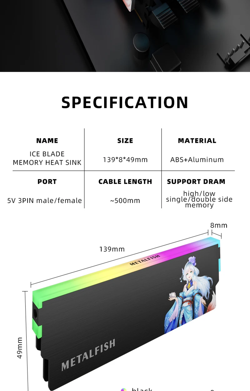 Comprar Disipador de calor METALFISH DRAM 5V-3PIN ARGB DDR3 DDR4 DDR5 Módulo de memoria de aluminio Chaleco de enfriamiento con almohadilla térmica para computadora de escritorio PC