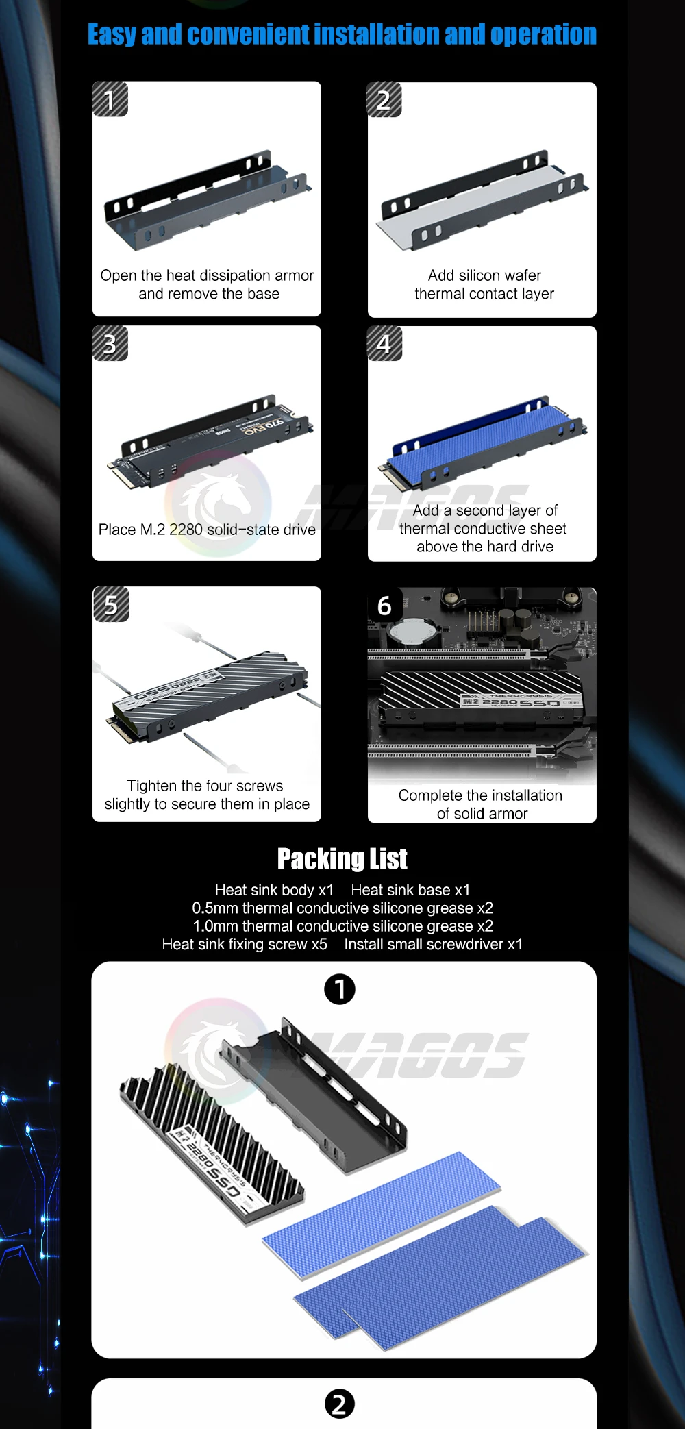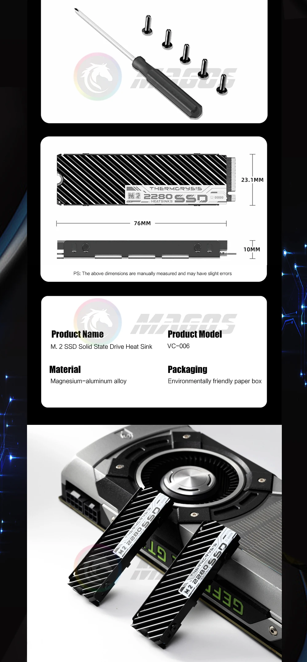 Comprar Disipador de calor minimalista M.2, radiador enfriador de aluminio completo con almohadilla térmica de silicona, 2280 NVME NGFF SSD, VC006