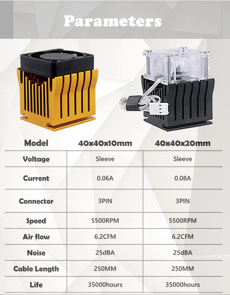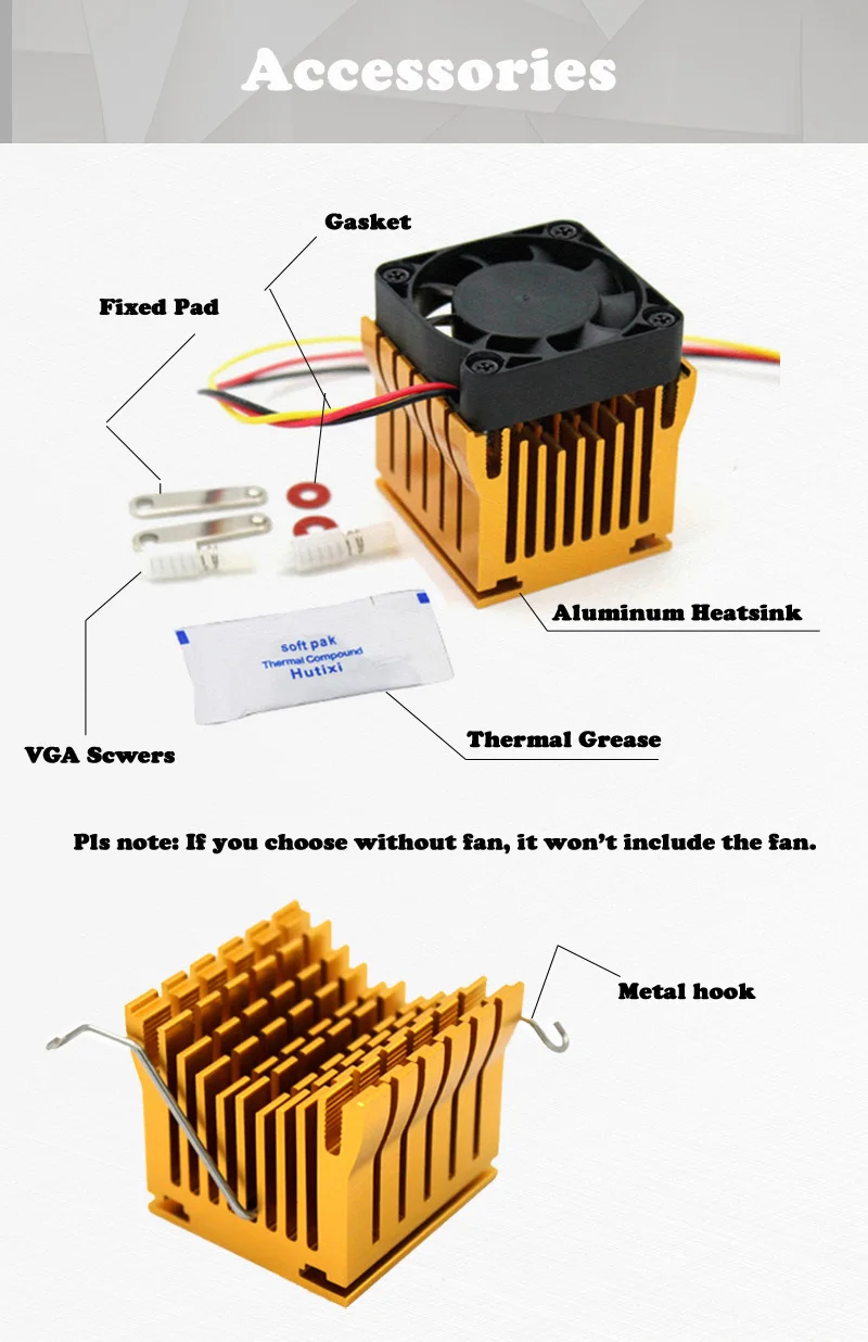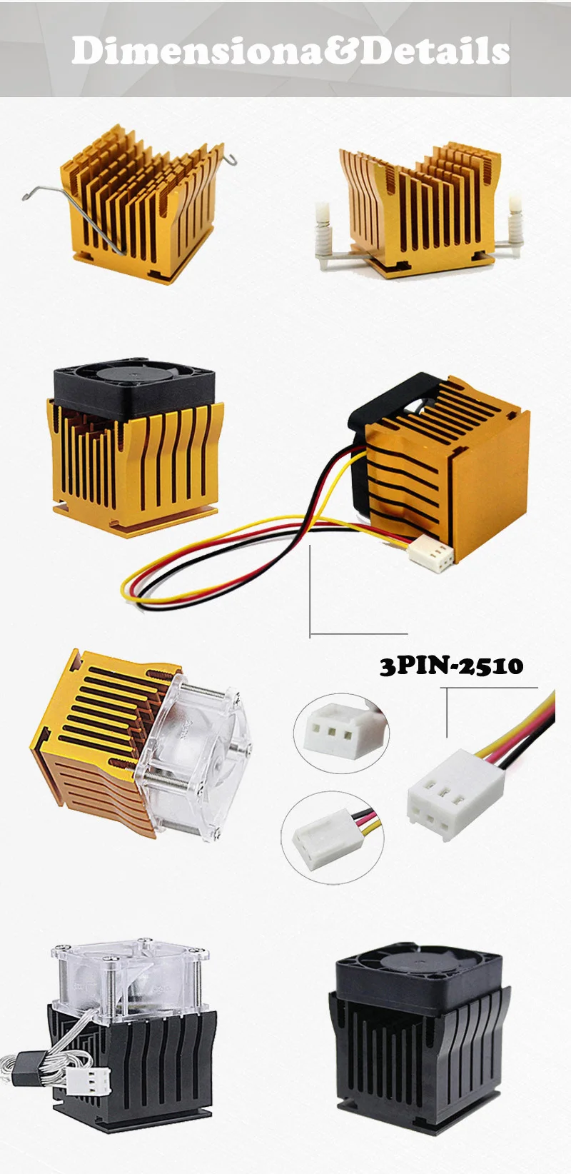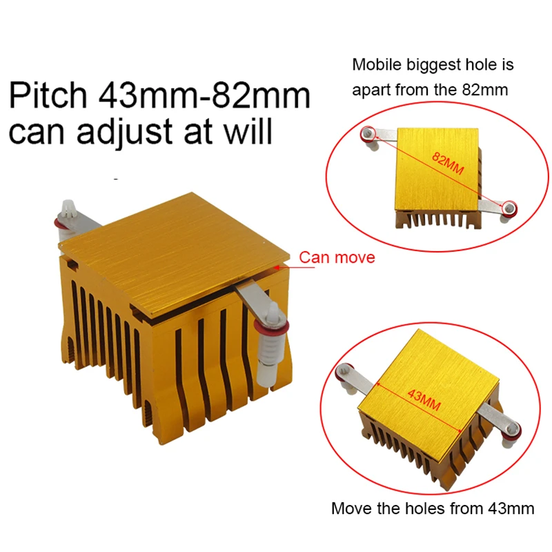 DIY Northbridge Heatsink Paramters:Material: AluminioColor: Negro/doradoTamaño: 40 (largo) x 38 (ancho) x 36 (alto) MM.Fila de paso: 50mm a 80mmPeso del disipador térmico: 77 g/unidad