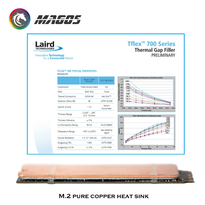 Disipador de calor para ordenador portátil M.2 2280 SSD NVME, radiador enfriador de cobre completo + Laird 700 Pad M2 que cae 6-15 D Cel para SN550 970EVO RD20
