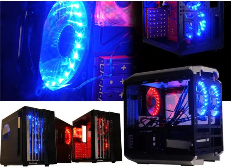 Comprar Disipador de calor para ordenador, ventilador de refrigeración Ultra silencioso, 15 o 33LED, 12CM, 12V, 3P, IDE, 4 pines, 8 modelos, 120mm, 16dB