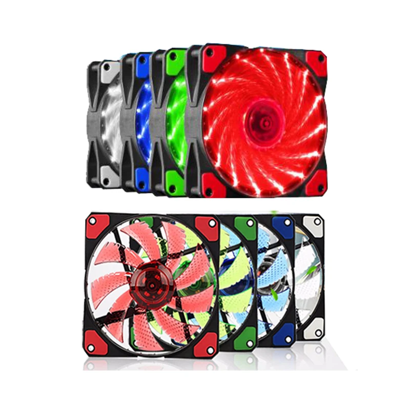 120mm PC Computer 16dB Ultra Silent 15 LEDs Case Fan Disipador de calor Enfriador de refrigeración con goma antivibración, ventilador de 12CM, 12VDC 3P IDE 4pin