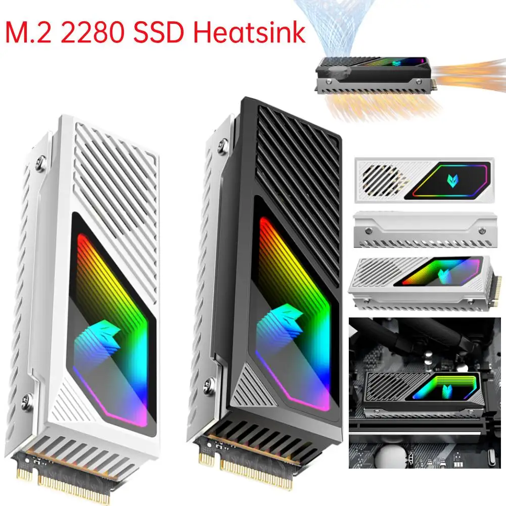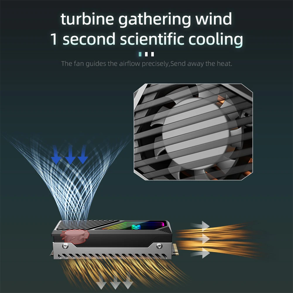 Disipador térmico SSD M.2 2280 Radiador de aleación de aluminio con almohadilla térmica de silicona 5V 3 pines ARGB Enfriador de unidad de estado sólido Ventilador incorporado Disipador térmico de disco duro para SSD M.2 2280