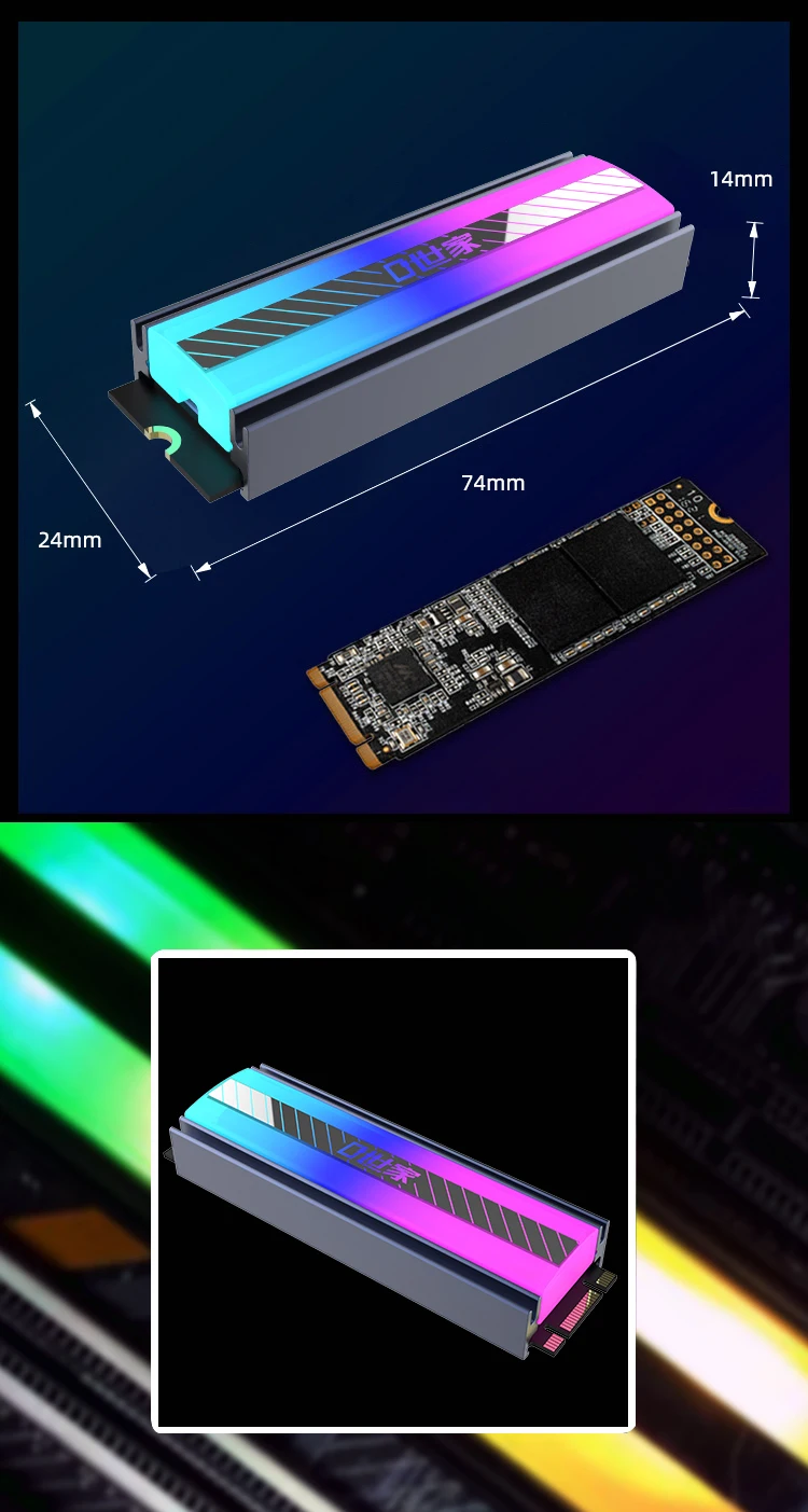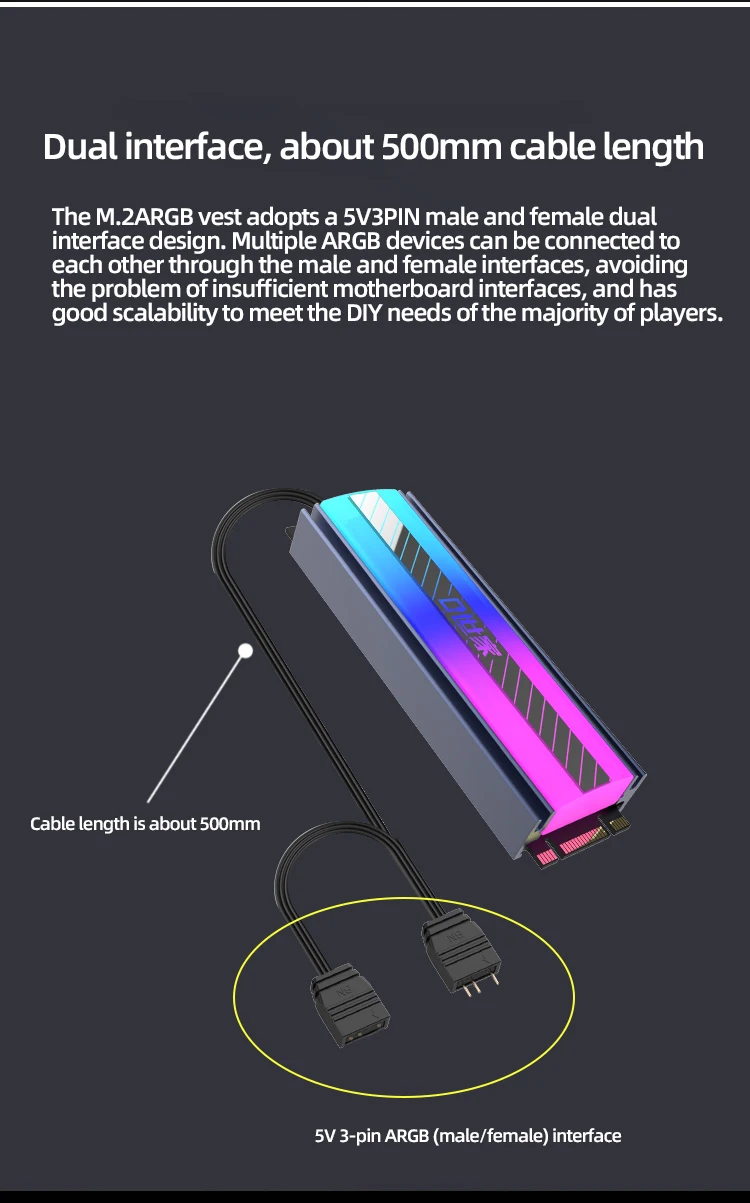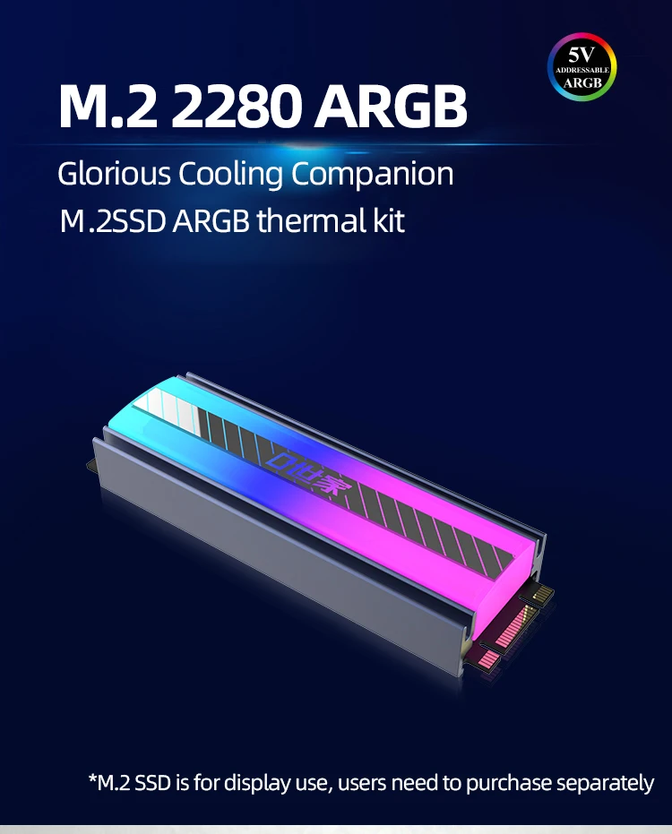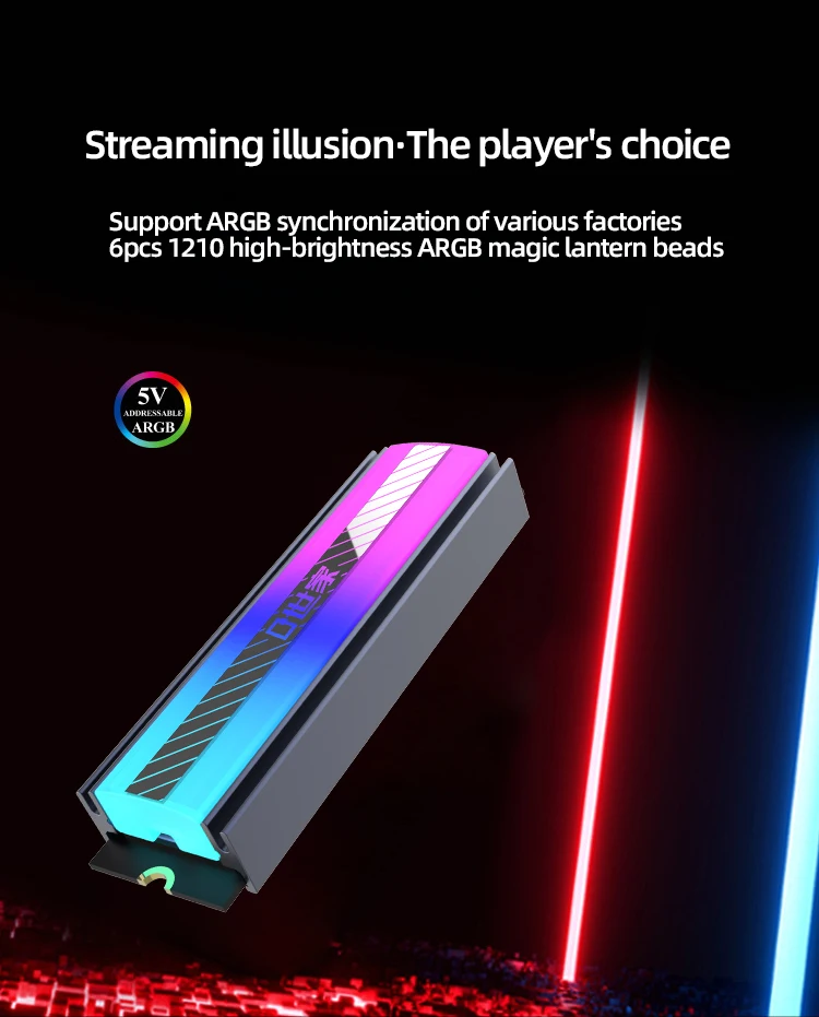 TEUCER M.2 NVME SSD disipador de calor 5V 3 pines ARGB luces de colores 2280 Enfriador de unidad de estado sólido