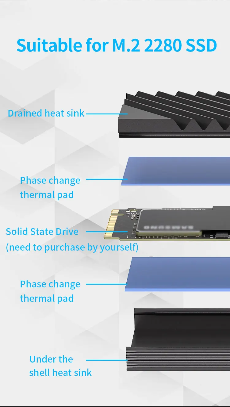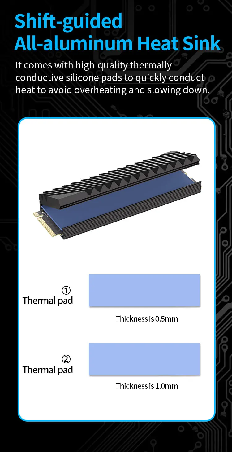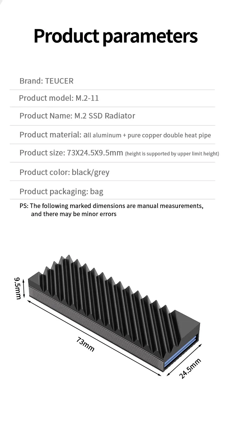 Disipador de calor TEUCER M.2 SSD NVMe M2 2280, junta de disipador de calor de aluminio para disco duro de estado sólido con almohadilla térmica de silicona, accesorios para PC