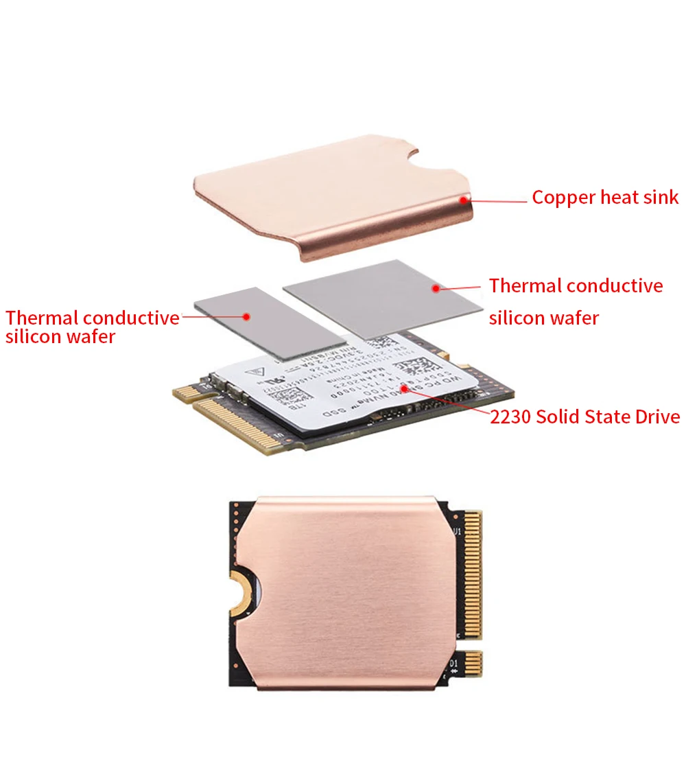 TISHRIC M.2 SSD disipador de calor M2 2230 NVME NGFF disco de estado sólido cobre puro/gráfico disipador de calor radiador enfriador fino para Desarrollop
