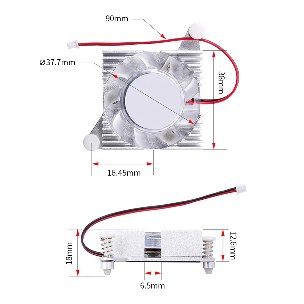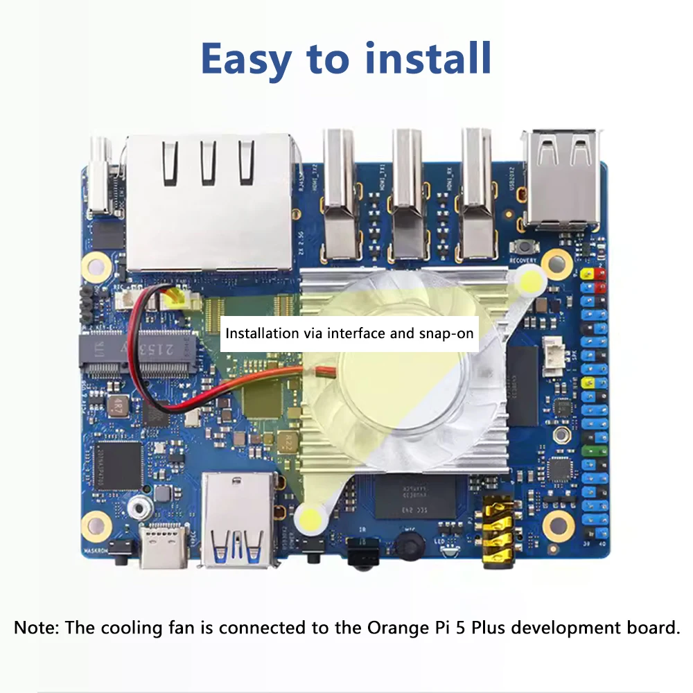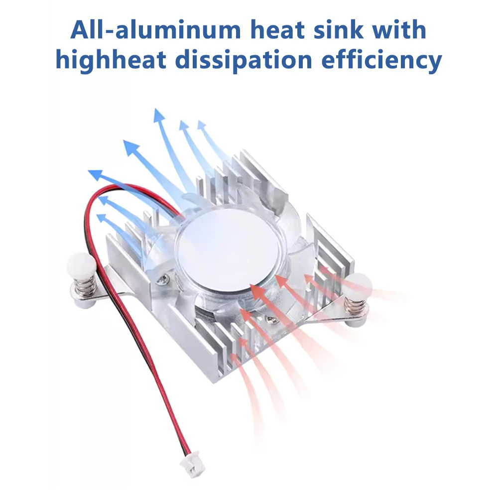 Característica:1.Compacto y fácil de instalar2.Material de aleación de aluminio, duradero.3.El diseño de la superficie tiene múltiples ranuras, buena disipación de calor.4.Ventilador de material transparente para PC, seguro y respetuoso con el medio ambiente5.Cojinete de aceite, funcionamiento suave, bajo nivel de ruido.Parámetro del productoDisipador de calor: perfil de aluminioDimensiones: 45 mm x 49 mm x 18 mmMaterial del ventilador: material transparente de PCTipo de rodamiento: aceiteTensión nominal: DC5VVoltaje de funcionamiento: CC 4,5 V-5,5 VVoltaje de arranque: ≤DC 3V (ON/OFF)Volumen de aire: : 5,22 CFM (REF)Presión del viento: 2,70 mmH2O(REF)Velocidad: 4900 RPM 15%Ruido: 21,44 dB(A)El paquete incluye:1 x Enfriador de disipador de calor con ventilador de refrigeración de aluminio para placa de desarrollo Orange Pi 5 Plus
