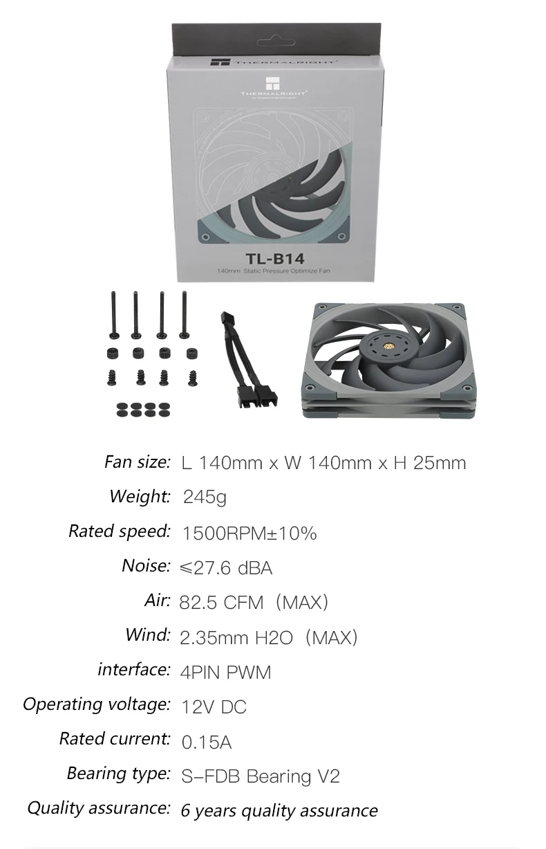 Comprar Disipador térmico para CPU, ventilador de refrigeración de TL-B14, 140mm, 1500RPM, 4 pines, PWM, S-FDB V2, rendimiento de rodamiento