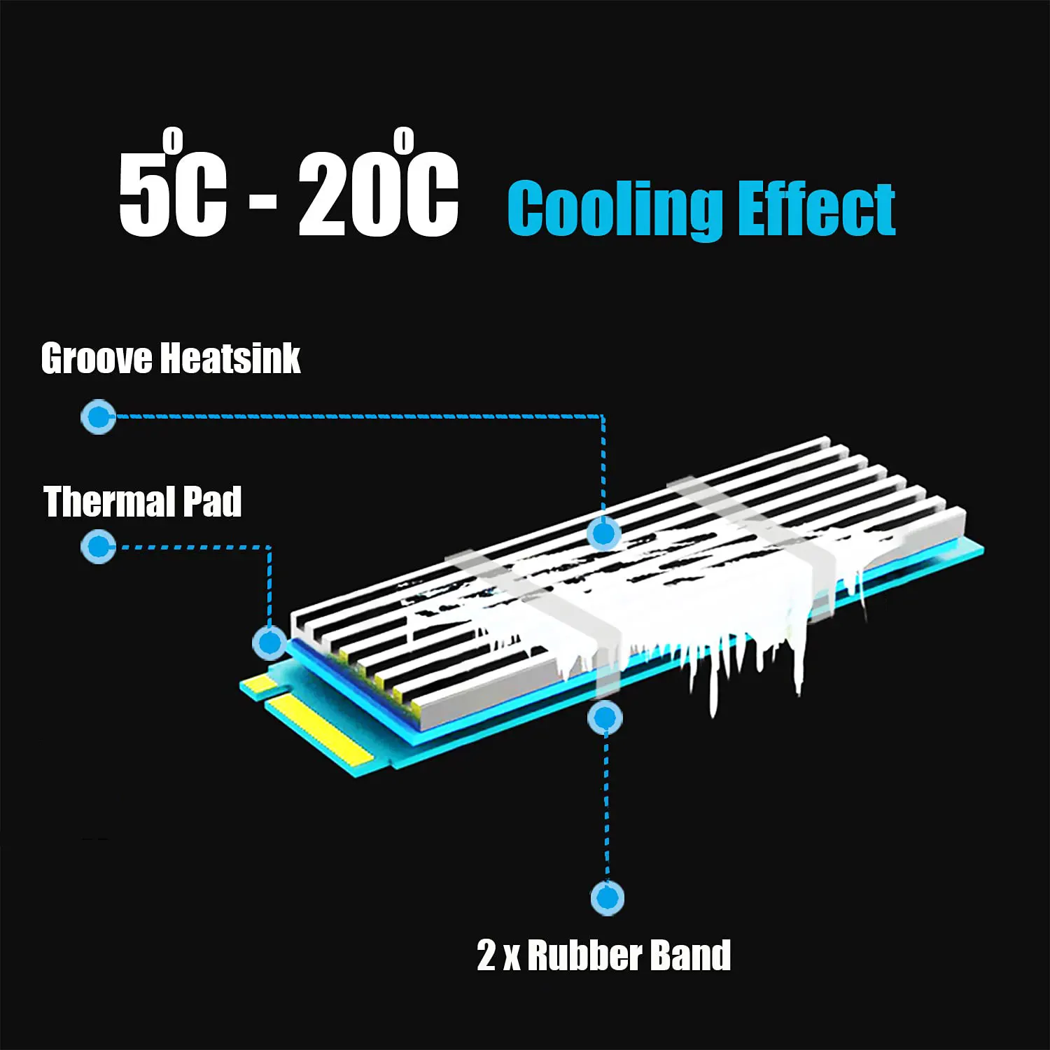 ⭐Efecto de enfriamiento de 5 ° C- 20 ° C (varía según el entorno) para mantener su SSD M.2 bajo un buen rendimiento incluso con carga completa. El disipador térmico M.2 puede extender la vida útil de M.2 PCIe SSD.