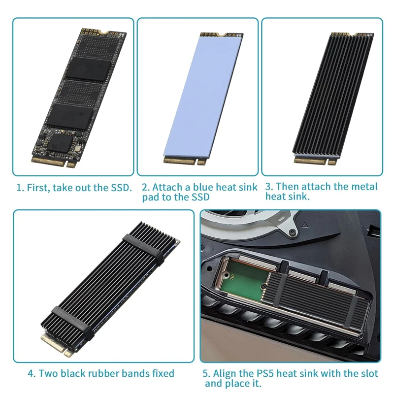 Comprar Disipador térmico M.2 con almohadillas térmicas de silicona, disipador térmico 2280 SSD con 2 correas de goma negras para PC/PS5 M.2 SATA SSD